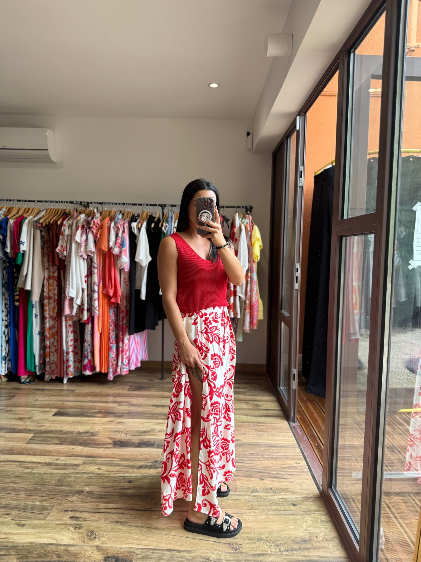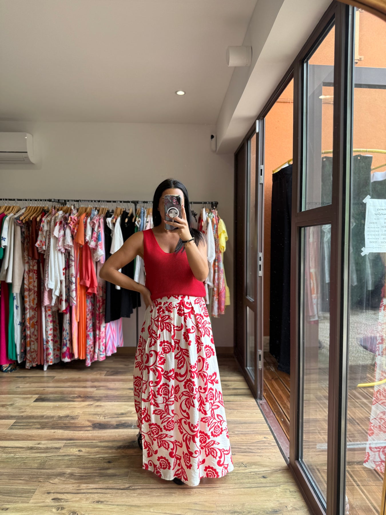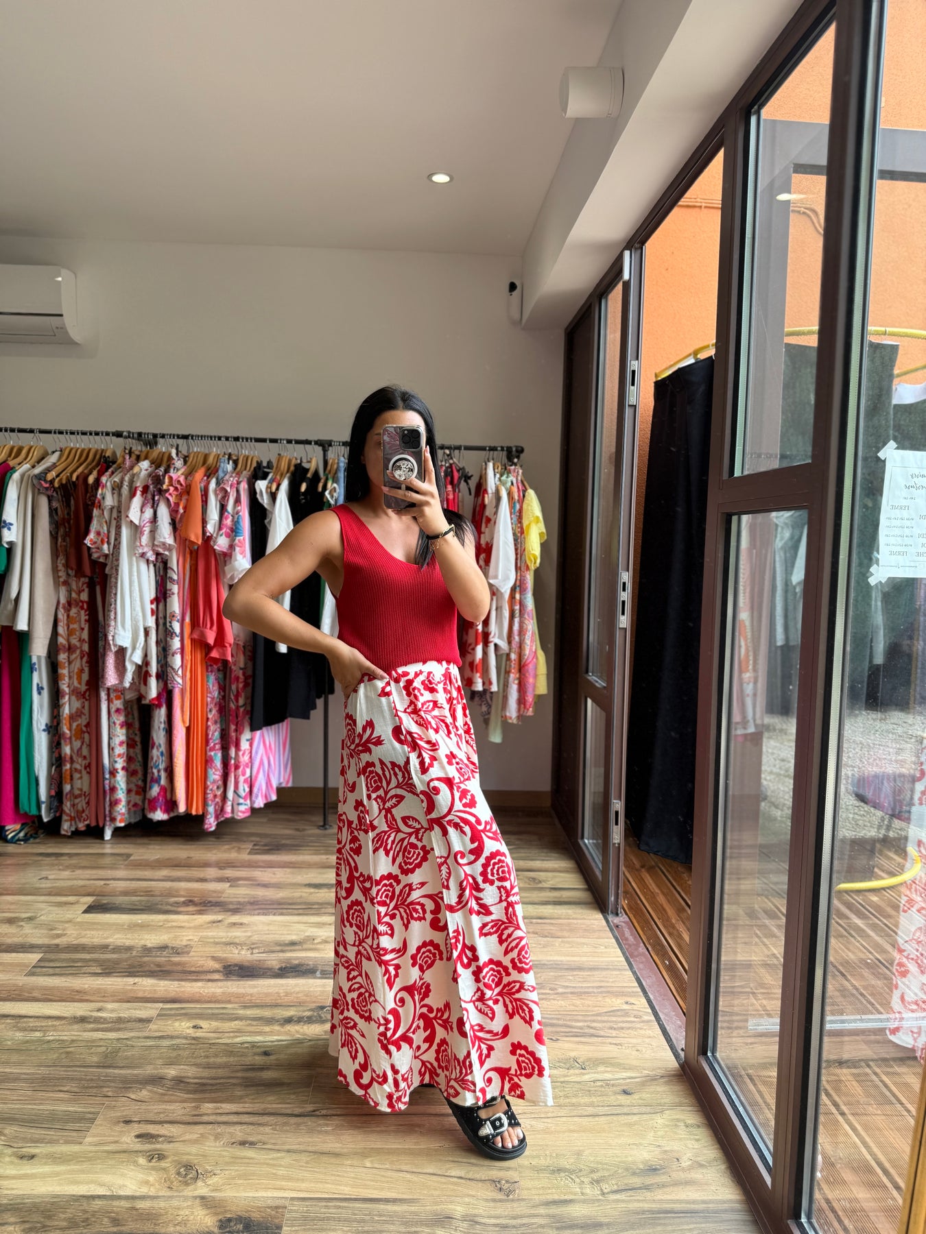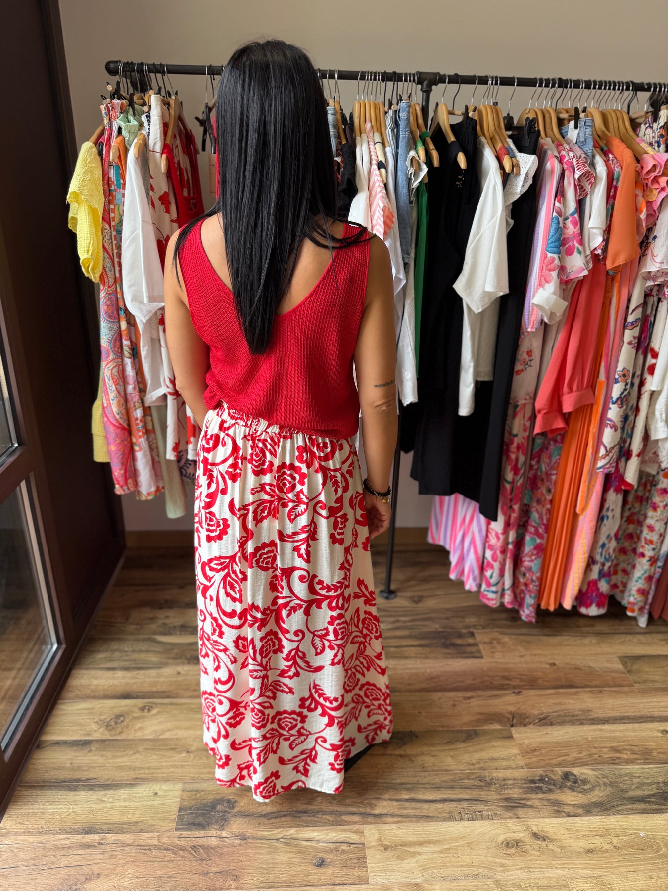 La jupe “Uxia” c’est l’élégance avec une touche de caractère 💃 Son imprimé rouge audacieux sur fond clair évoque un esprit bohème chic et solaire. On la porte ici avec le top “Odile” rouge pour un total look éclatant, mais elle fonctionne aussi très bien avec un top blanc, noir ou beige. Une pièce forte, facile à matcher, qui donne de l’allure à toutes les silhouettes.