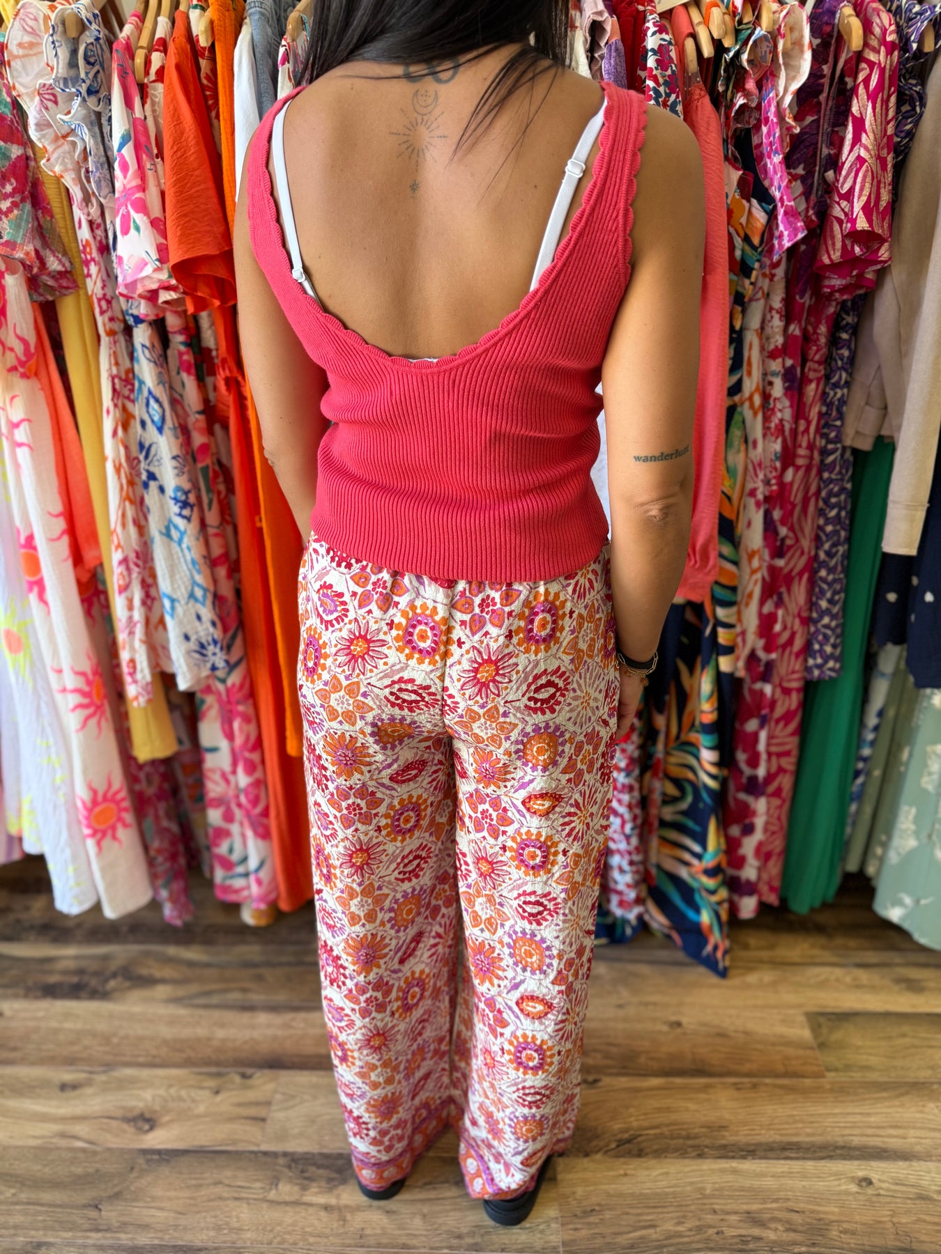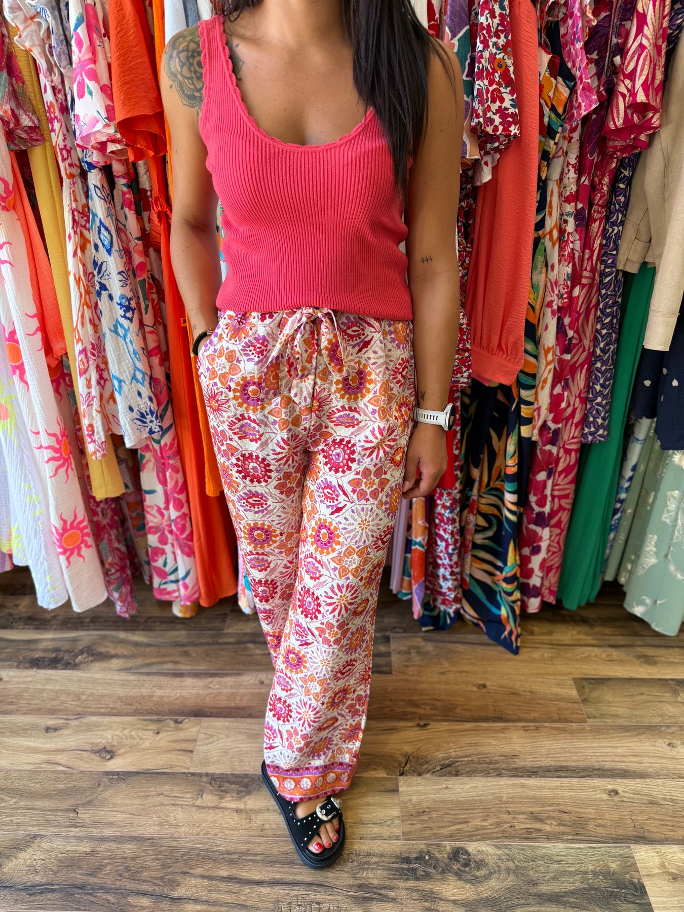 Un pantalon coup de cœur pour l’été 🌞 ! On adore sa matière douce, son imprimé solaire et sa coupe ultra agréable. À associer avec un top uni pour un look estival plein de peps ✨