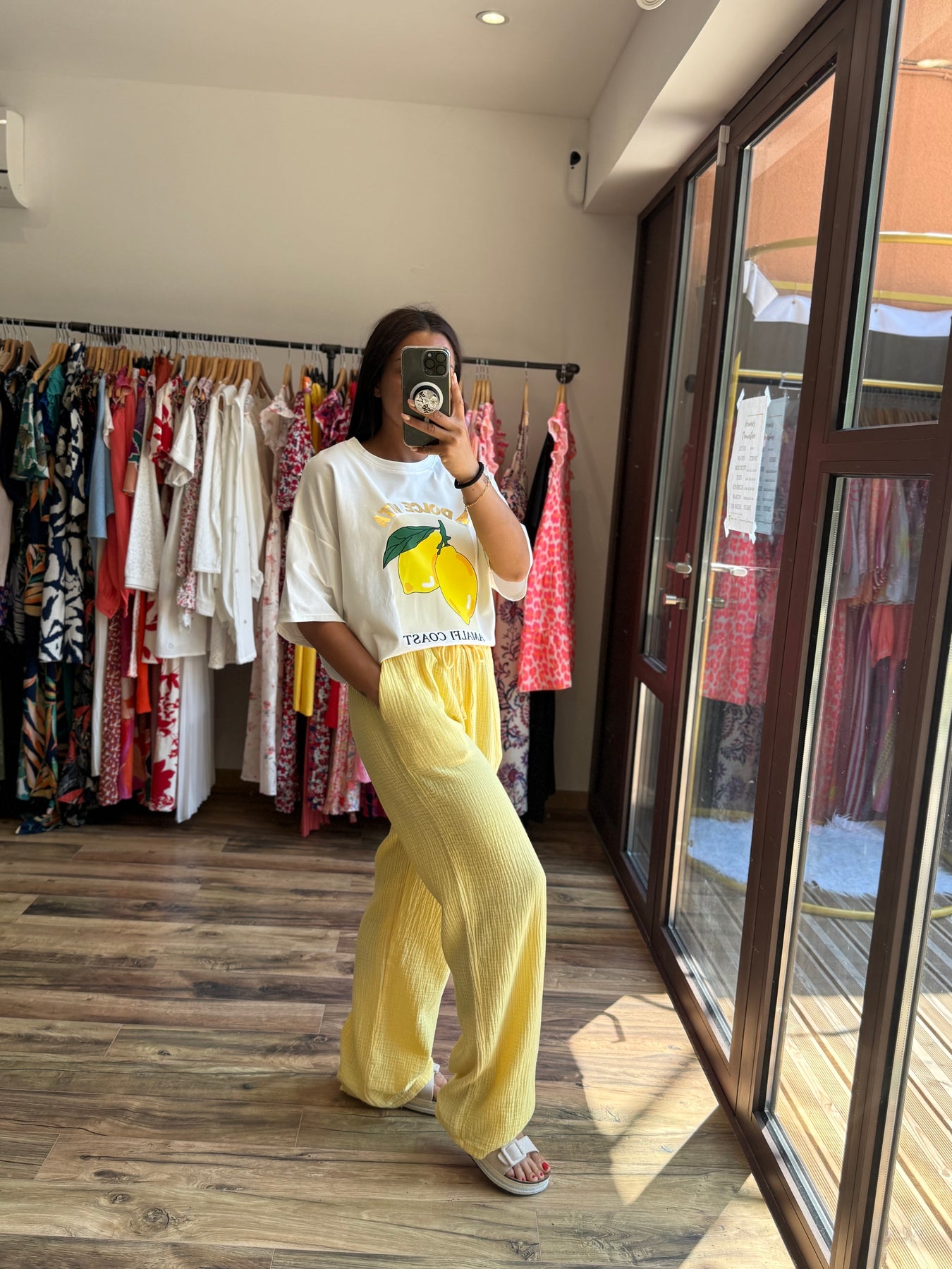 📸 Look porté avec le tee-shirt “Robyn” imprimé citron et les sandales “Lorina”