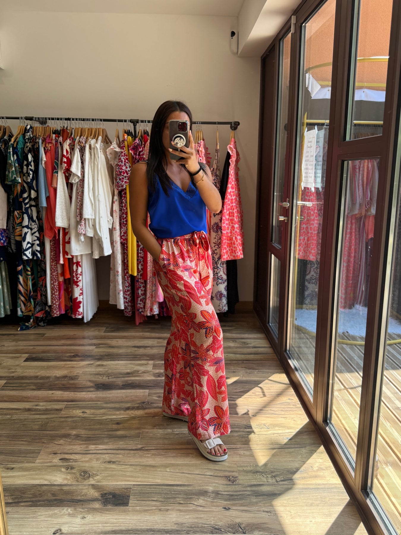 📸 Look porté avec le top “Dipa” bleu roi et les sandales “Lorina”