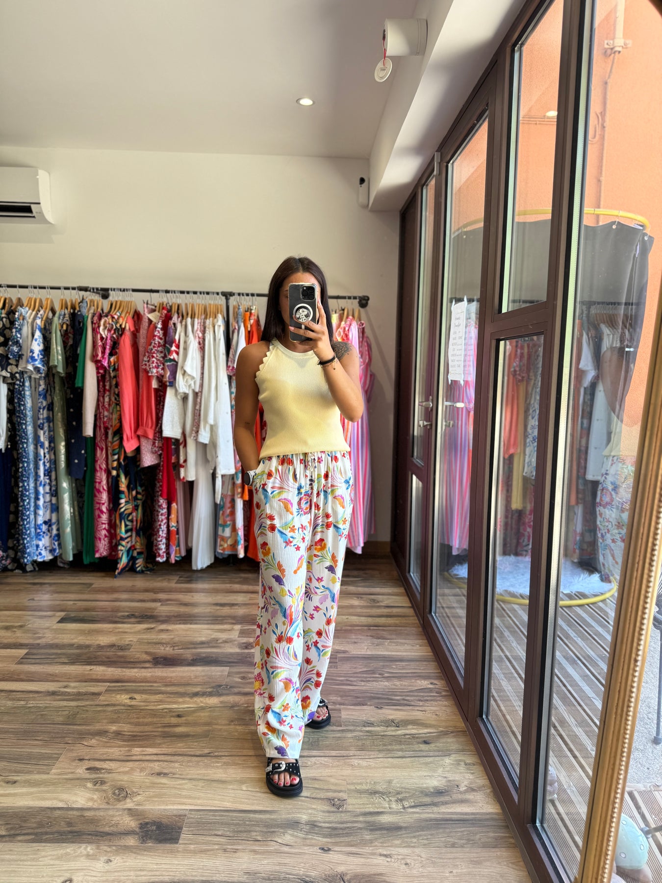 Un pantalon estival qu’on adore pour son tissu tout doux et son imprimé éclatant 🌈. À porter avec un top uni pour laisser parler la couleur, comme ici avec un joli jaune citron 🍋. Hyper agréable à porter, il assure un look stylé et confortable toute la journée !