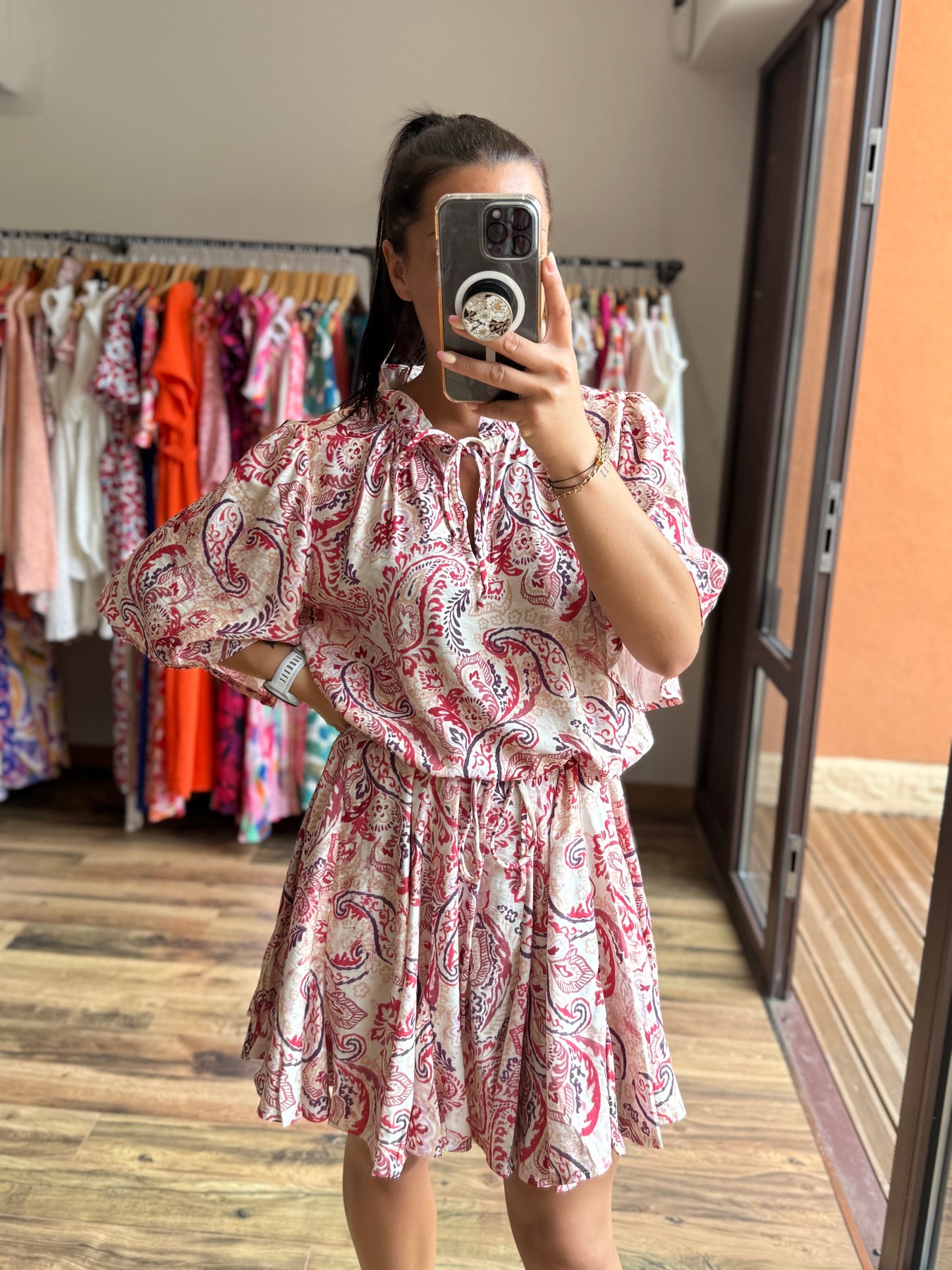 Un imprimé qui en jette, une coupe cool qu’on ajuste comme on veut, et ce petit col à nouer (ou pas) pour changer de mood… Elle est belle, elle est légère, elle fait tout le taf. À porter avec des sandales, des sneakers ou pieds nus au bord de l’eau !