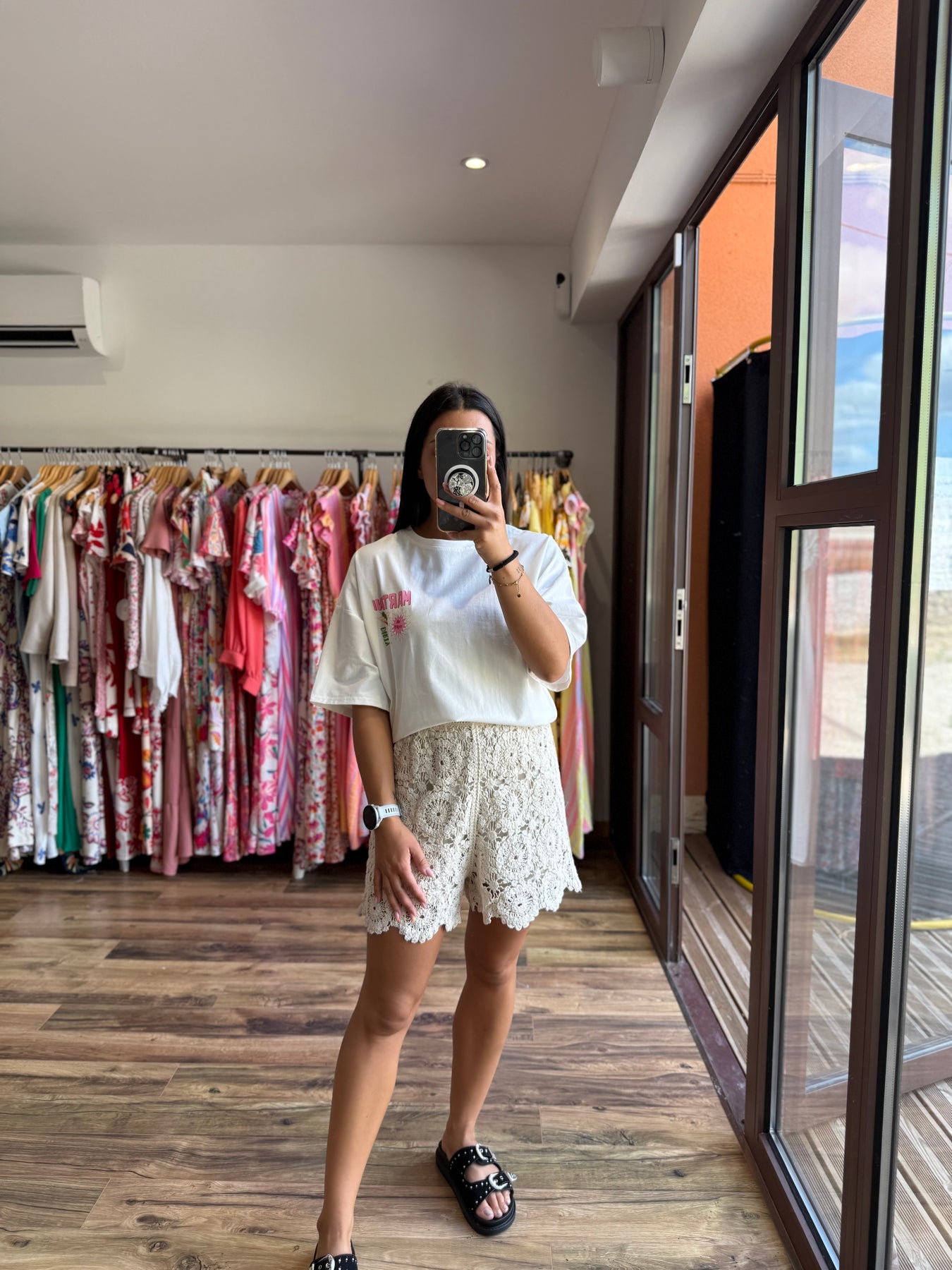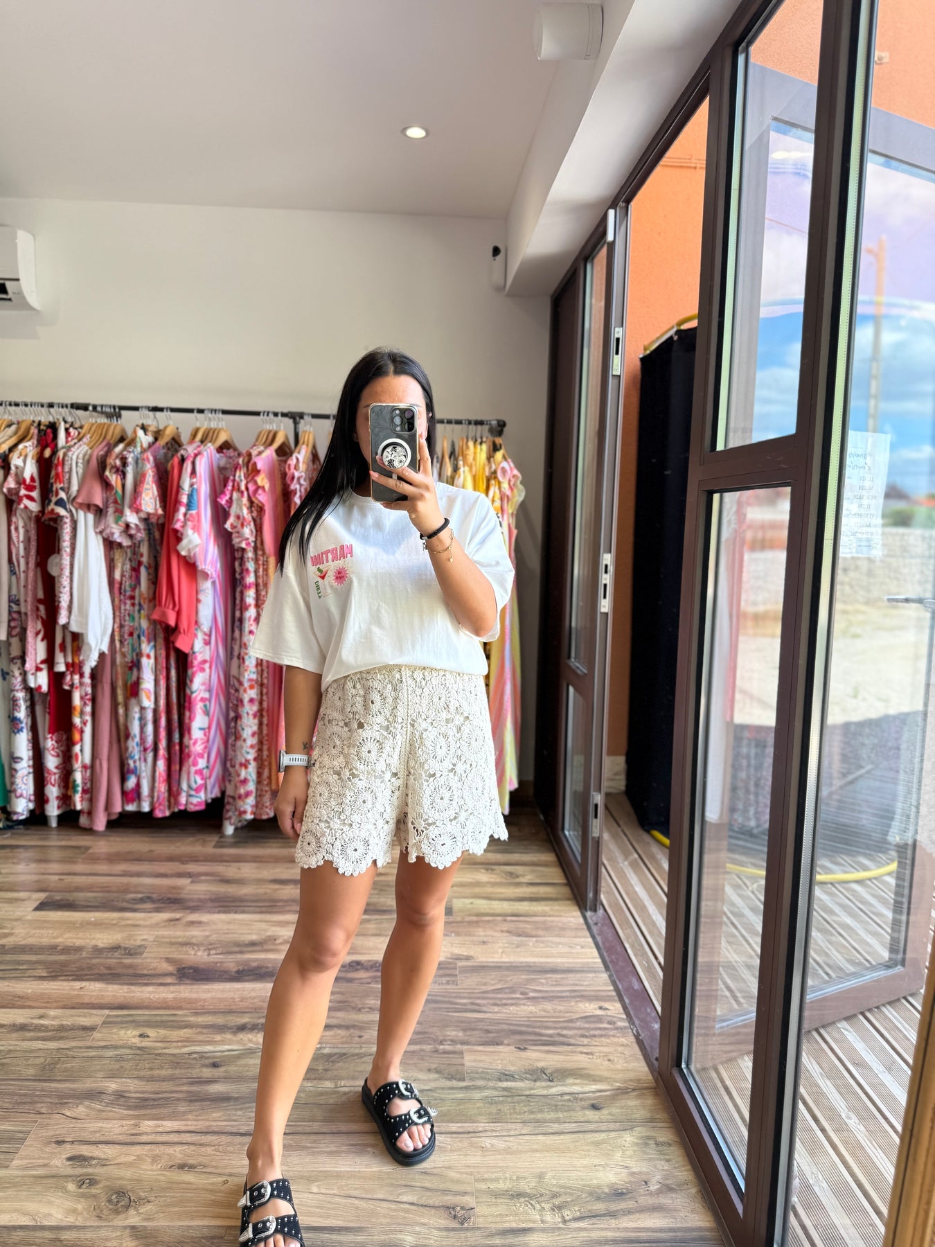 2️⃣ Alicia mesure 1m57 et porte le short avec le tee-shirt “Martini” oversize.