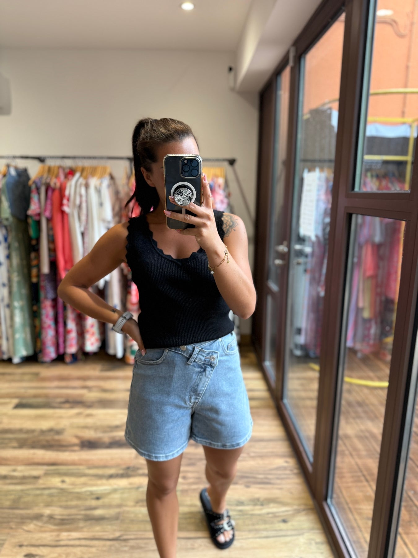 On craque pour son boutonnage croisé original qui dessine joliment la taille 🤍. Un basique revisité, à porter tout l’été avec vos tops fluides, un débardeur ou même une chemise oversize. Sa matière souple et stretch assure un confort optimal. C’est le jean version short qu’il vous faut 🔥