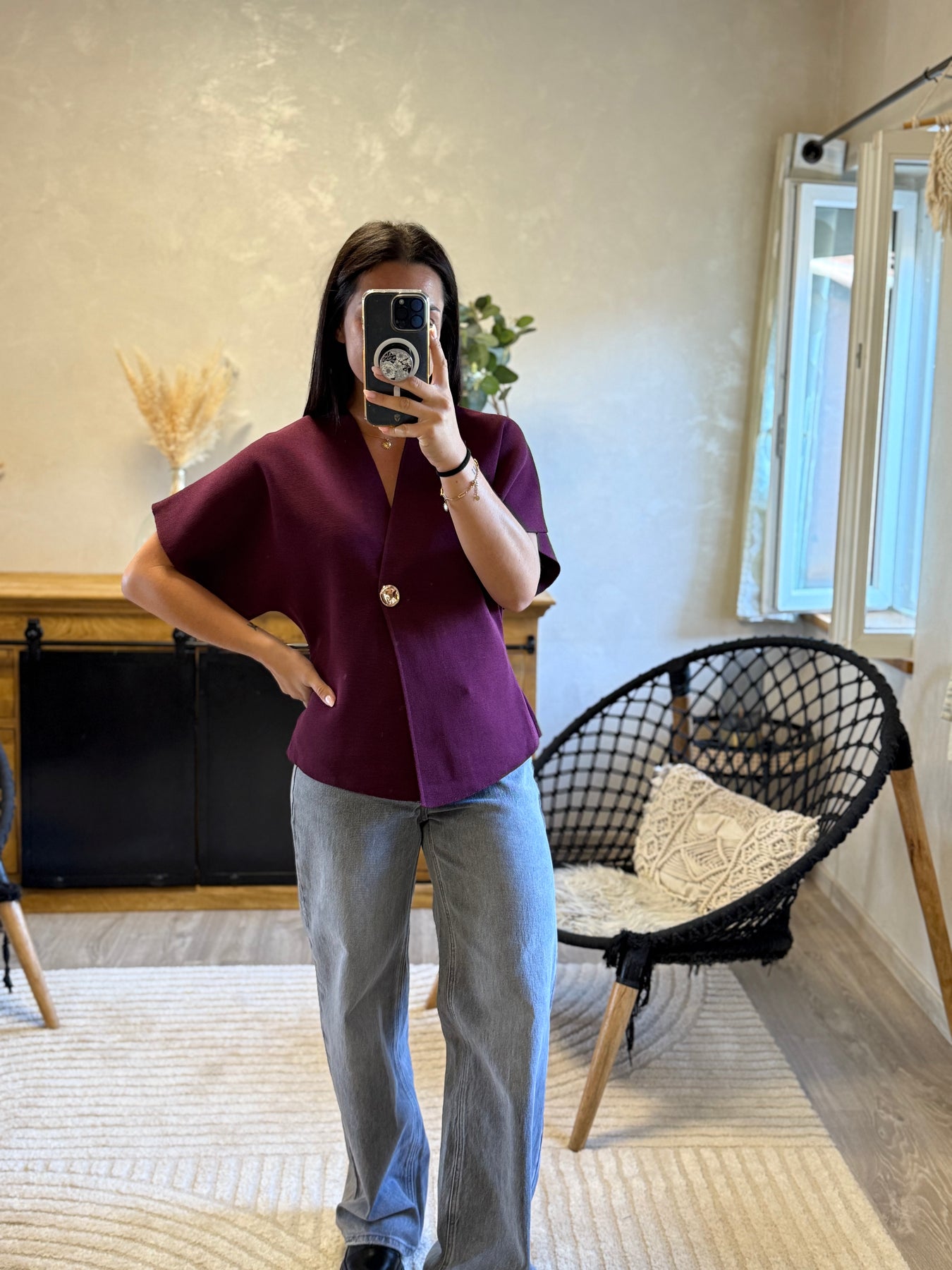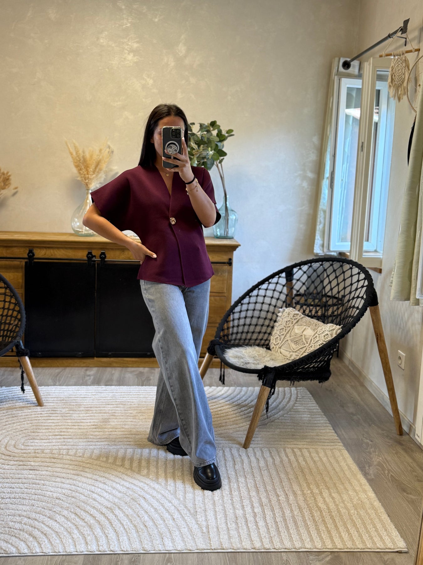 Le gilet Ophélia, c’est l’alliance parfaite entre simplicité et chic. Son bouton bijou apporte la touche élégante qui fait la différence ✨. Portée ici avec le jean Holine, elle crée un look moderne et raffiné, facile à porter en journée comme en soirée.