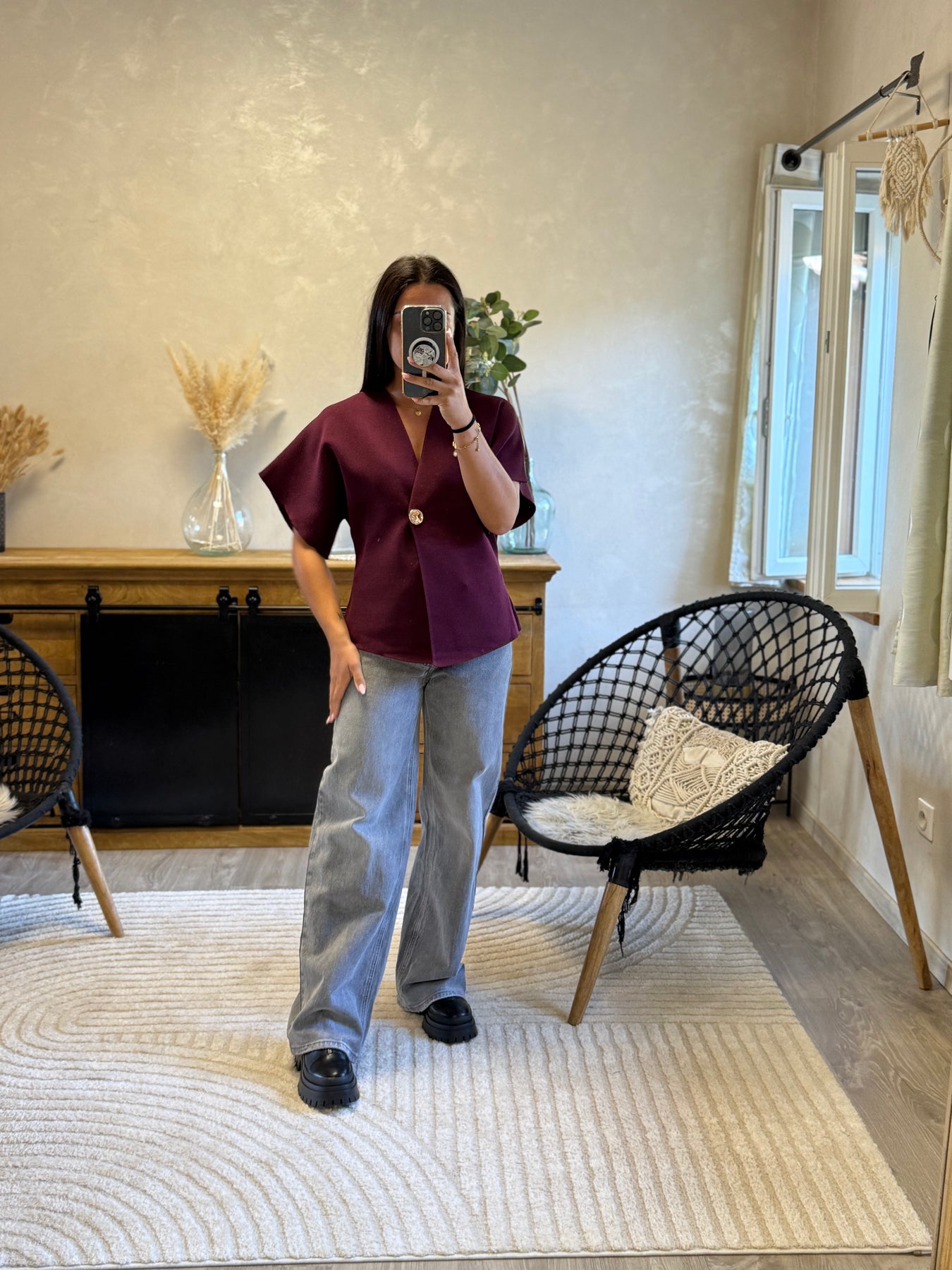 🍷 gilet en maille bordeaux – Élégance minimaliste