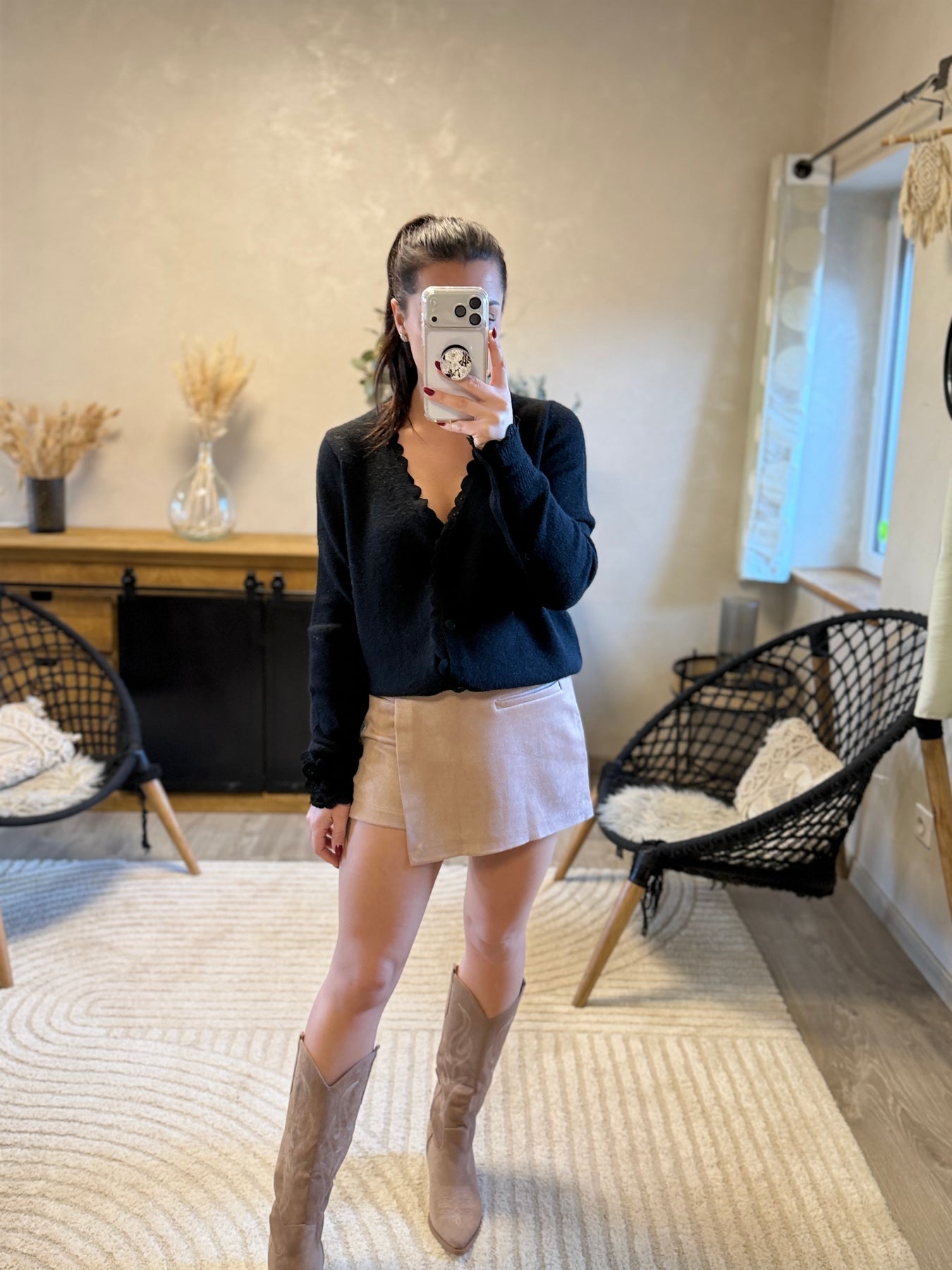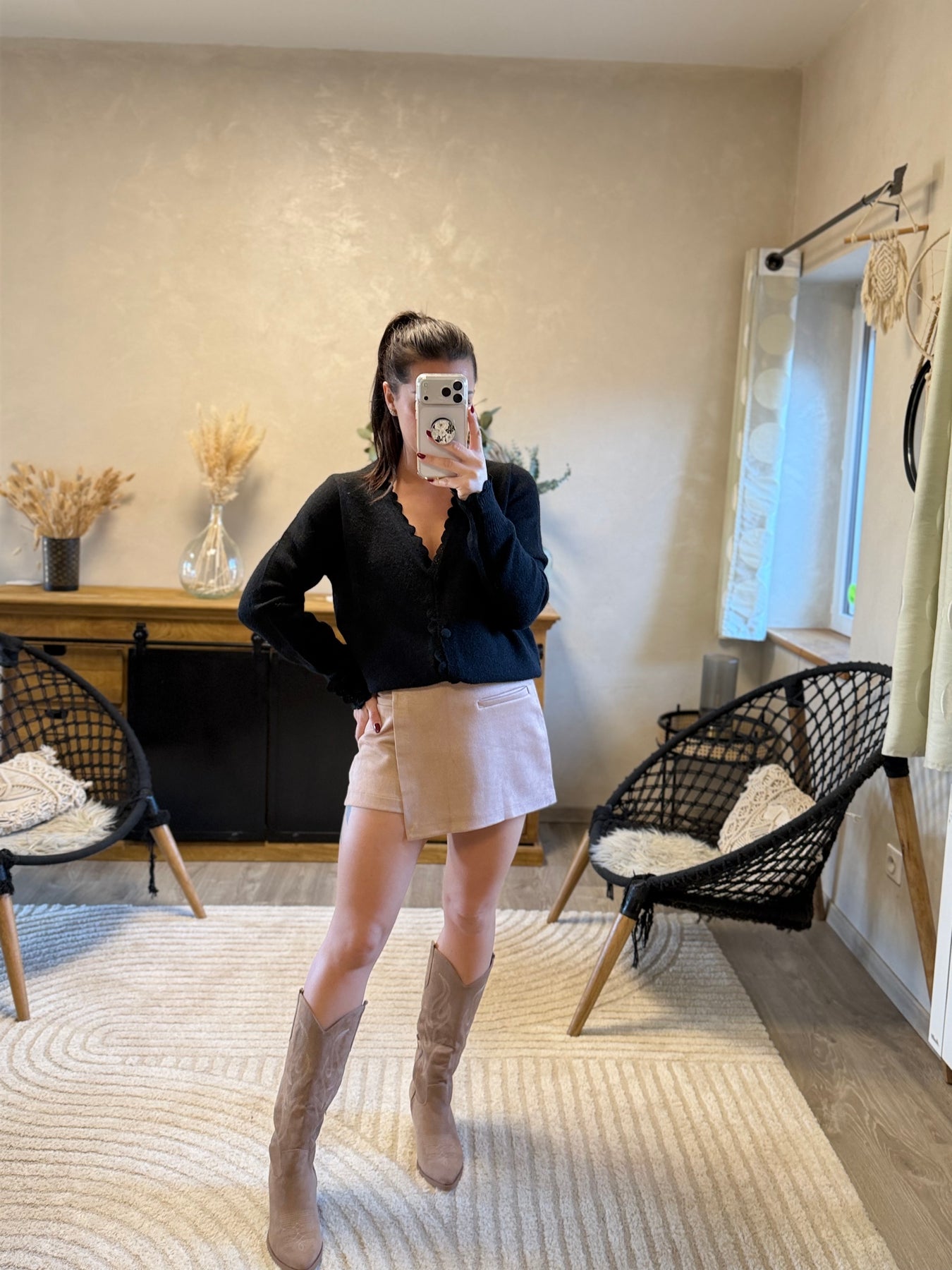 Le gilet Sophie est idéal pour créer des looks féminins sans effort : rentré dans une jupe-short pour un style chic et tendance, ou porté ouvert sur un débardeur en dentelle pour un effet plus romantique. On adore sa coupe confortable et ses détails raffinés ✨