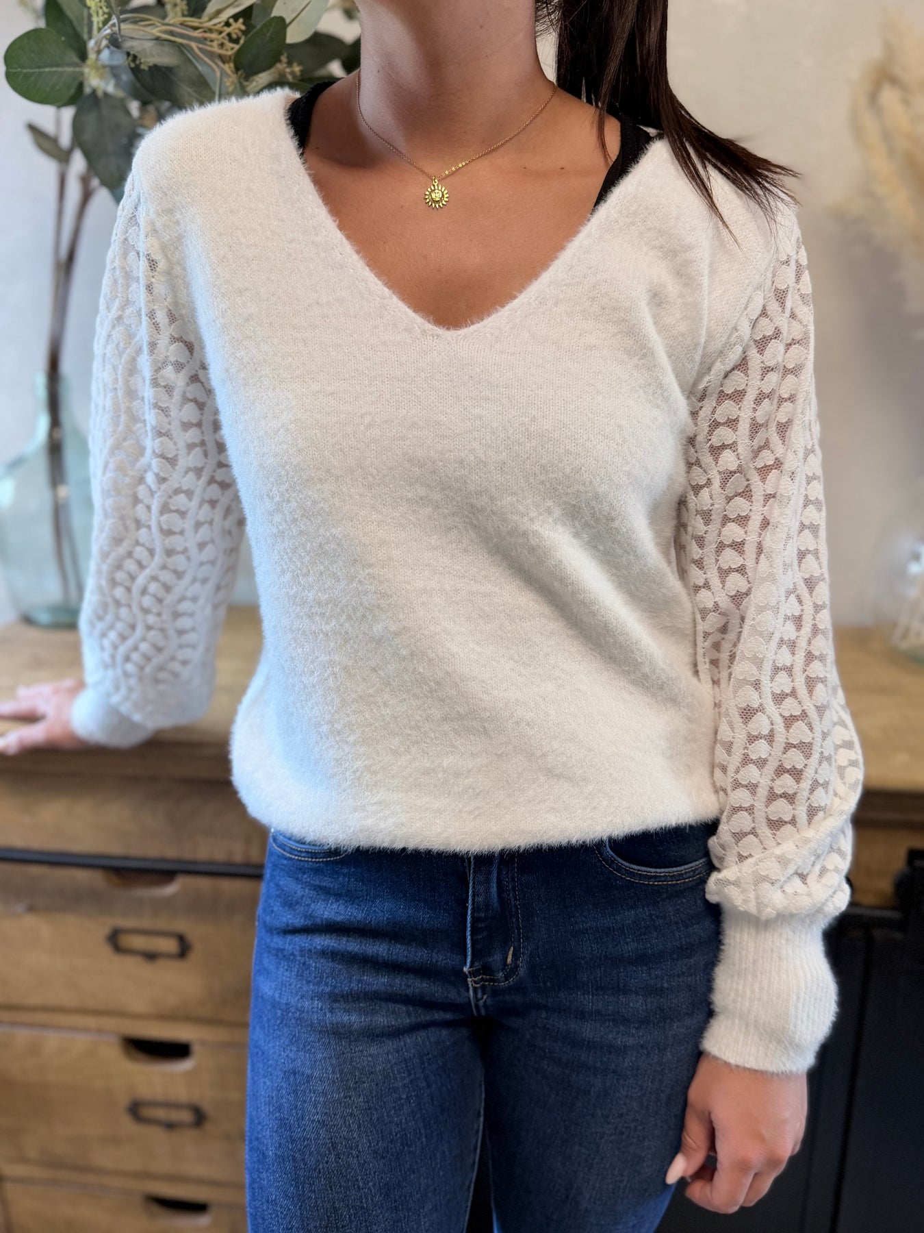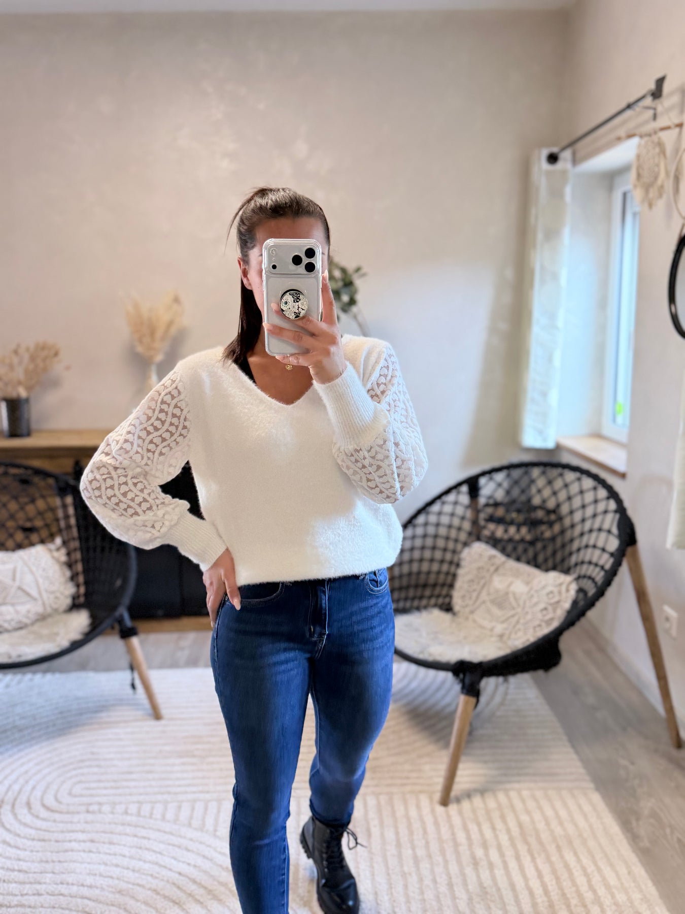 🤍 Pull “Baptiste” – Élégance & détails dentelle