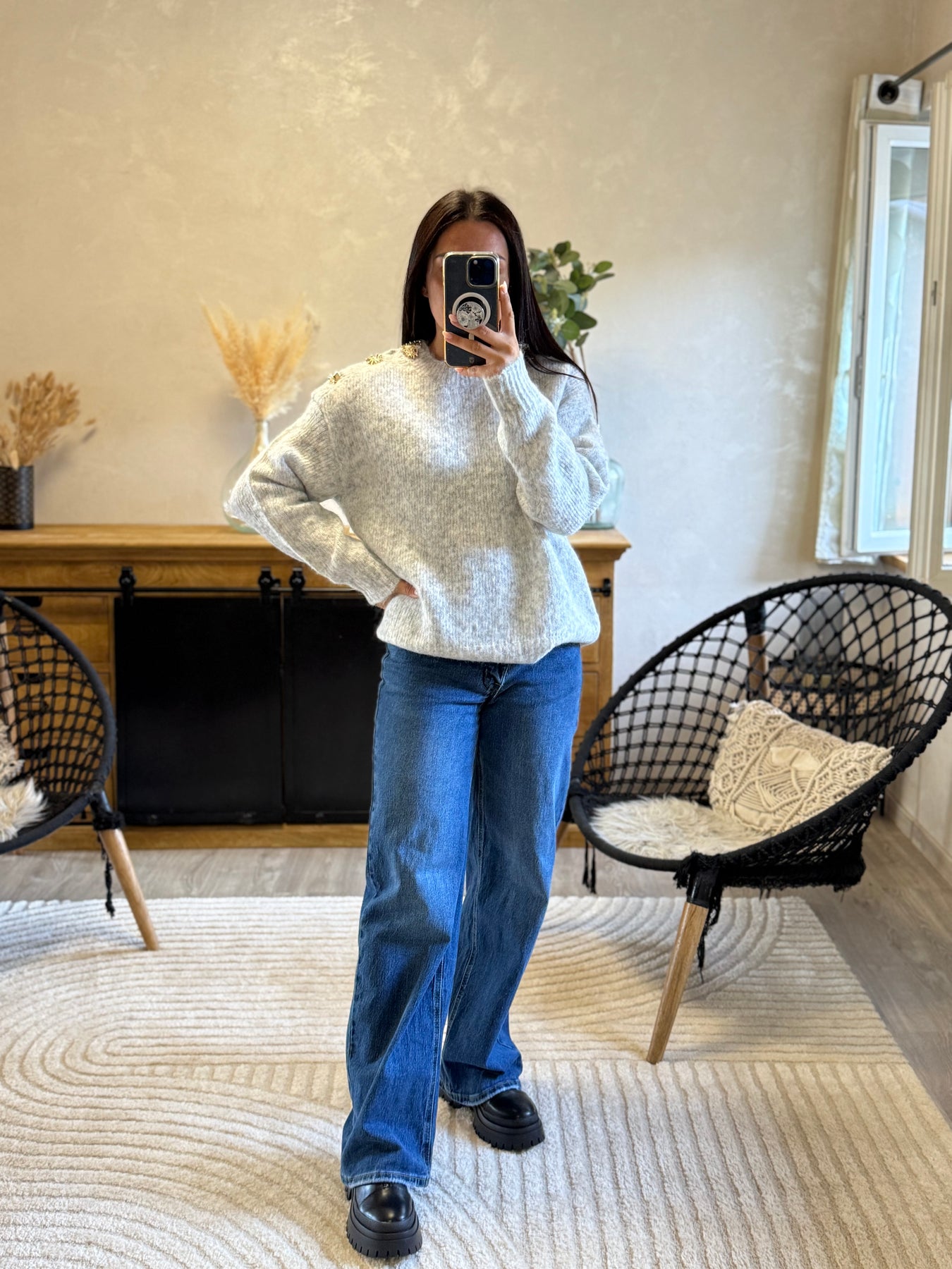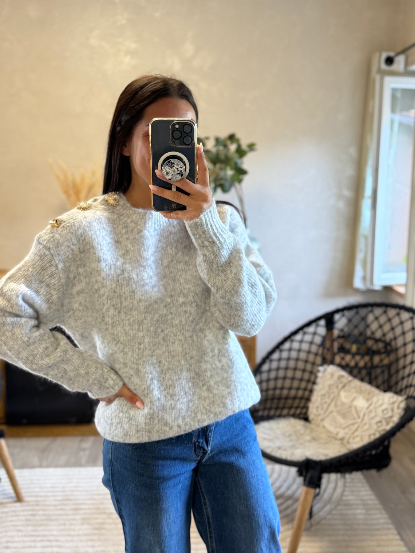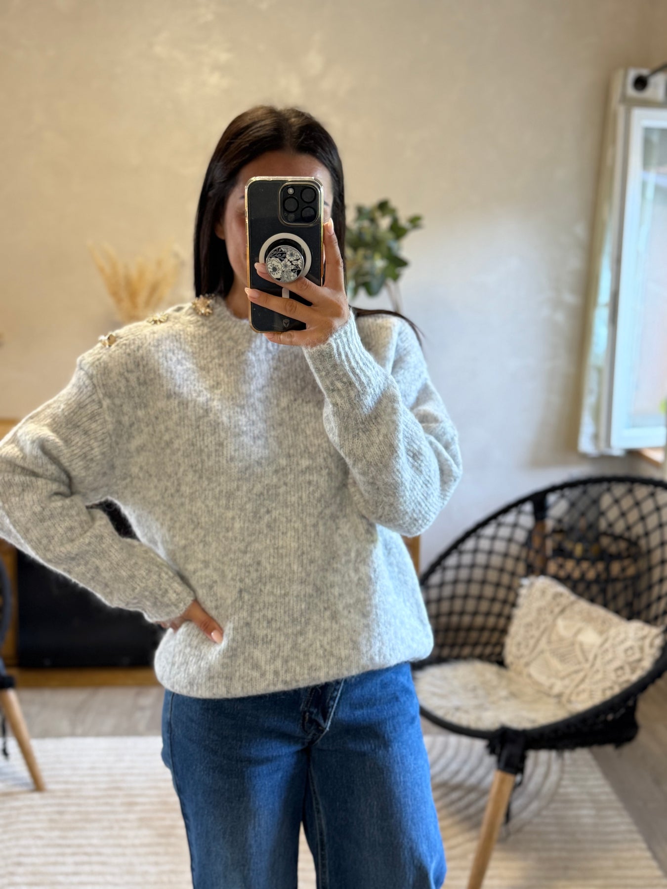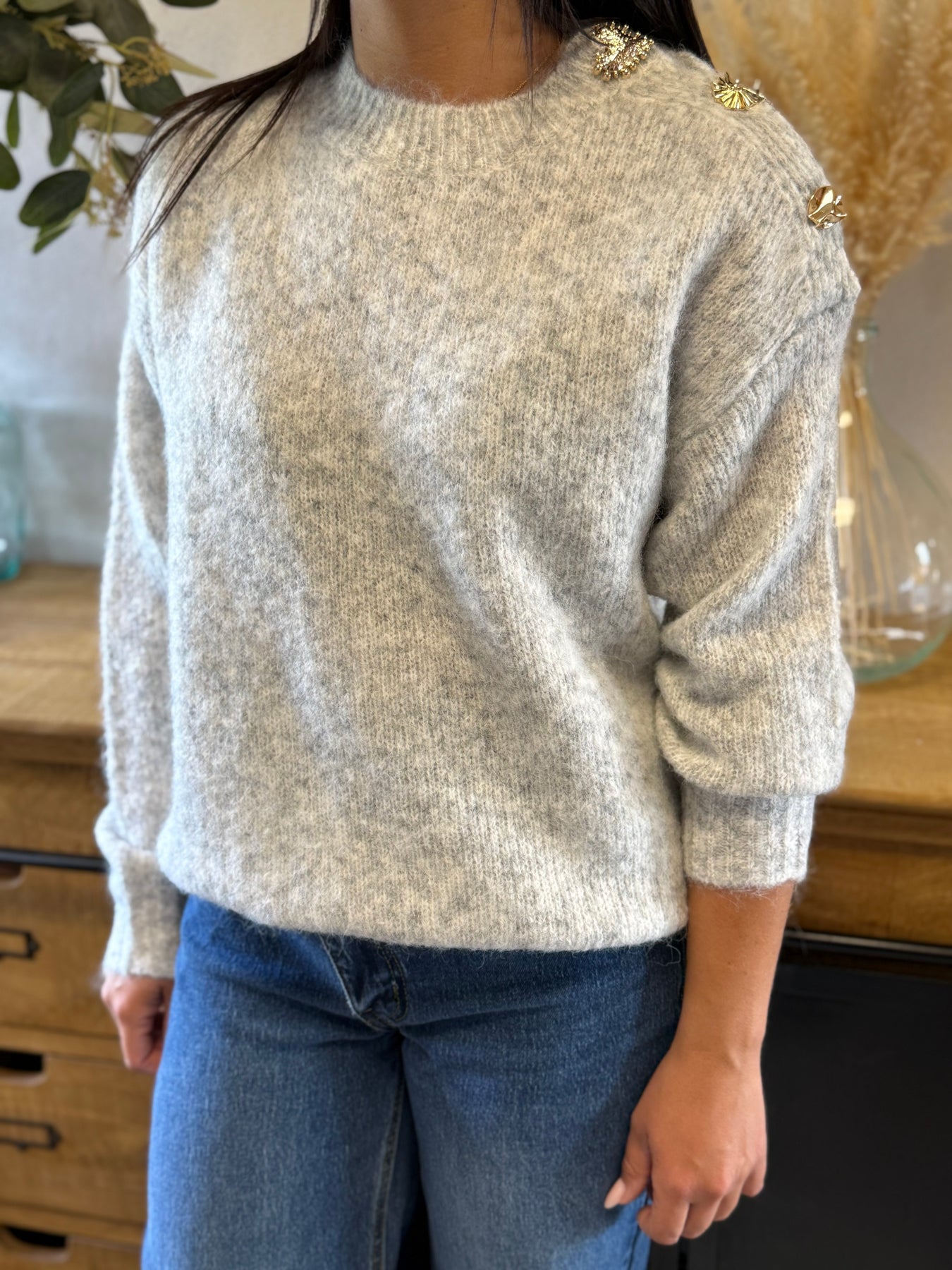 Le pull Mandy, c’est la pièce cocooning twistée par des détails précieux ✨. Ses boutons bijoux dorés apportent une touche chic et originale à ce basique d’hiver. On l’adore avec un jean pour un look casual élégant, ou associé à une jupe midi pour une version plus féminine ❄️.