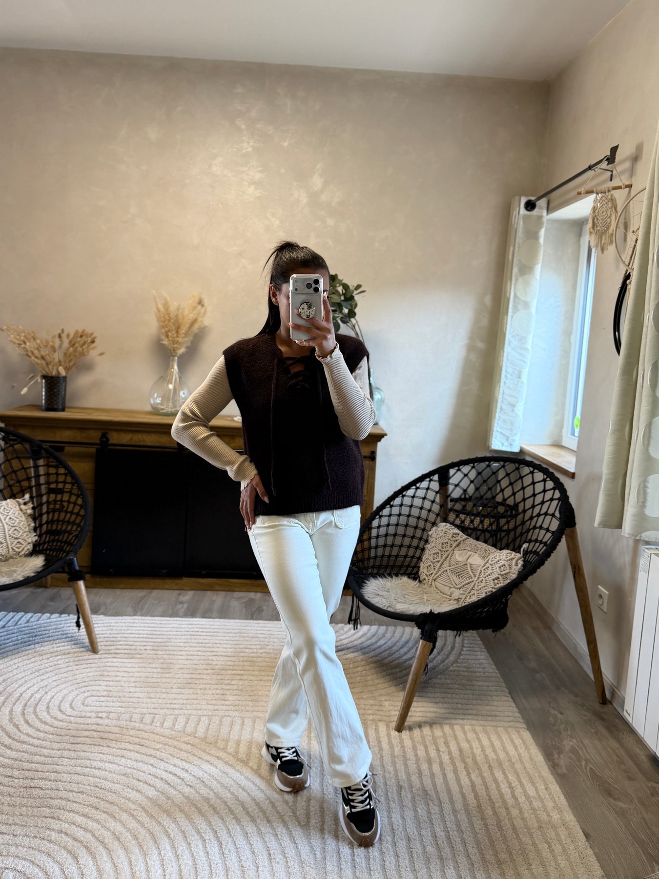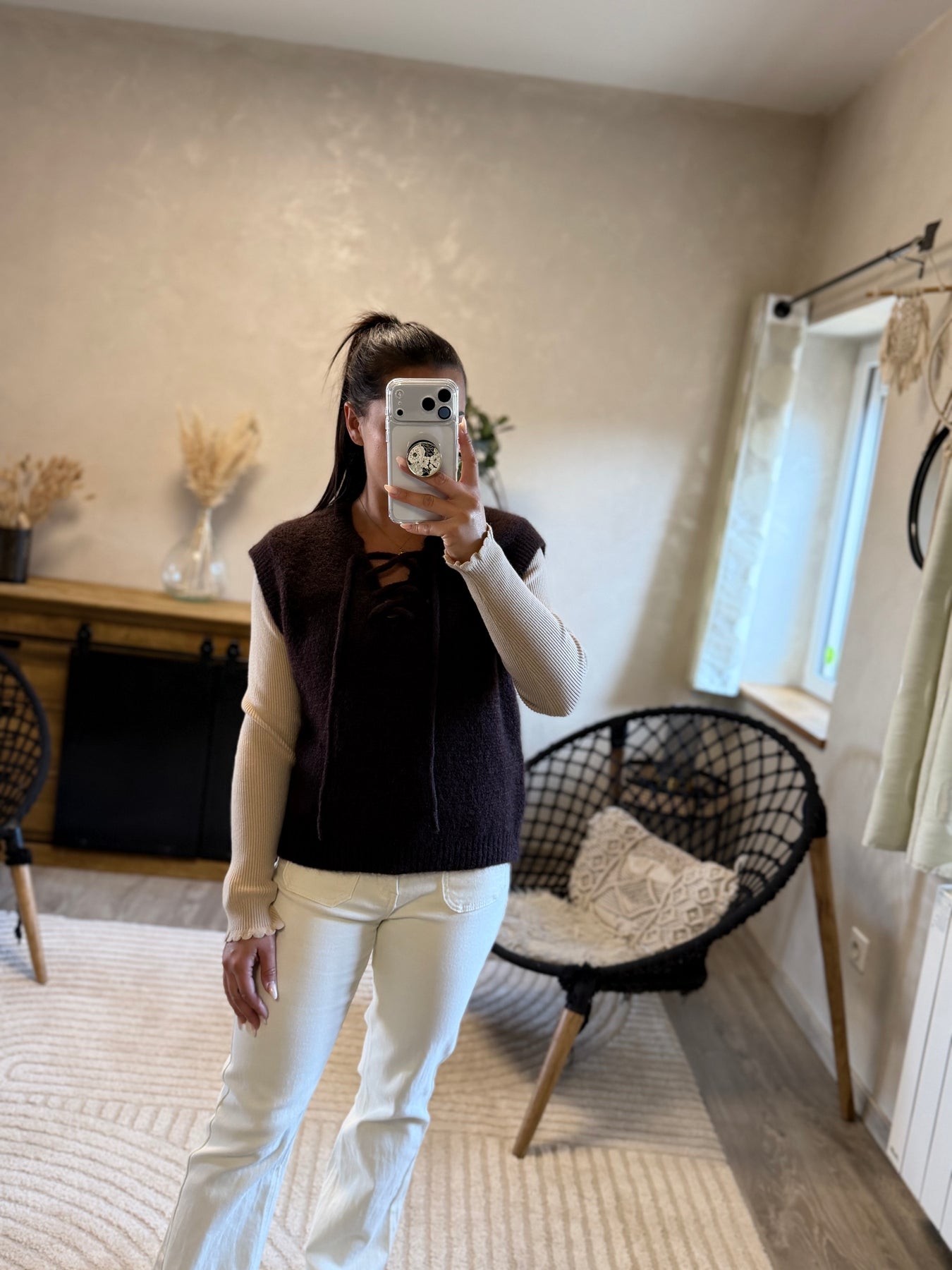 On craque pour sa maille moelleuse et son décolleté lacé qui ajoute du caractère. À porter seul ou superposé sur une chemise ou un top fin, il donne instantanément du style à n’importe quelle tenue.