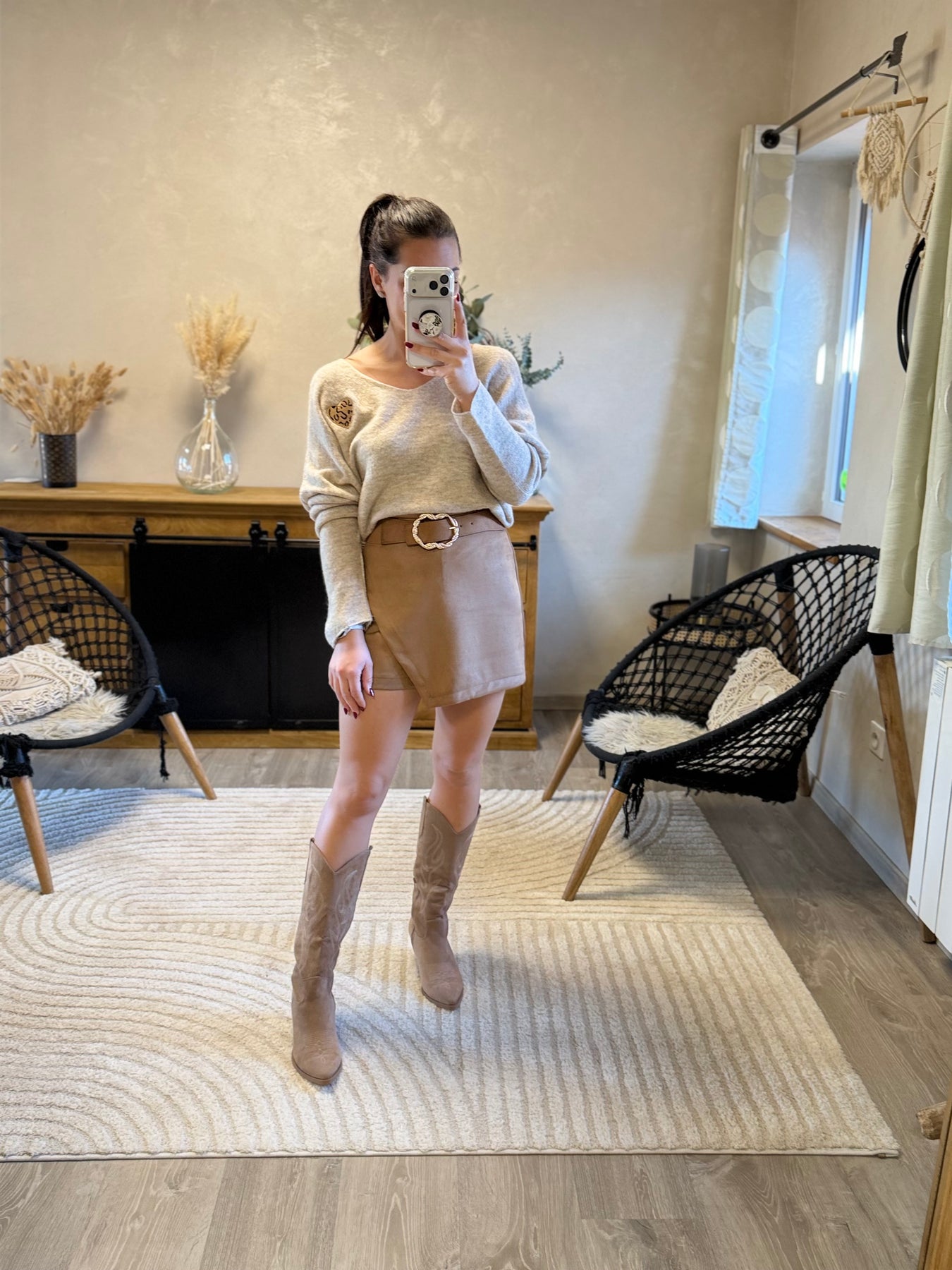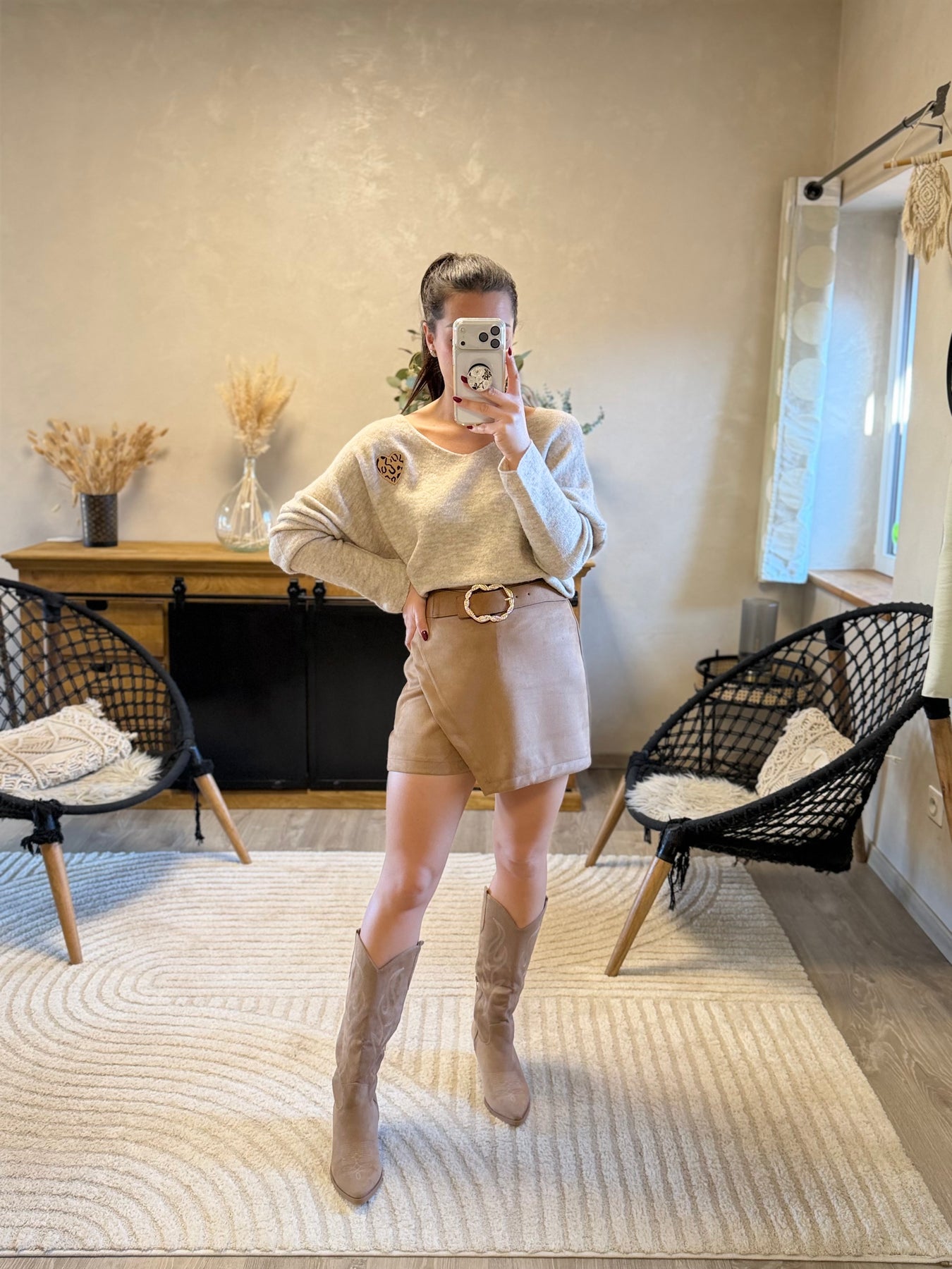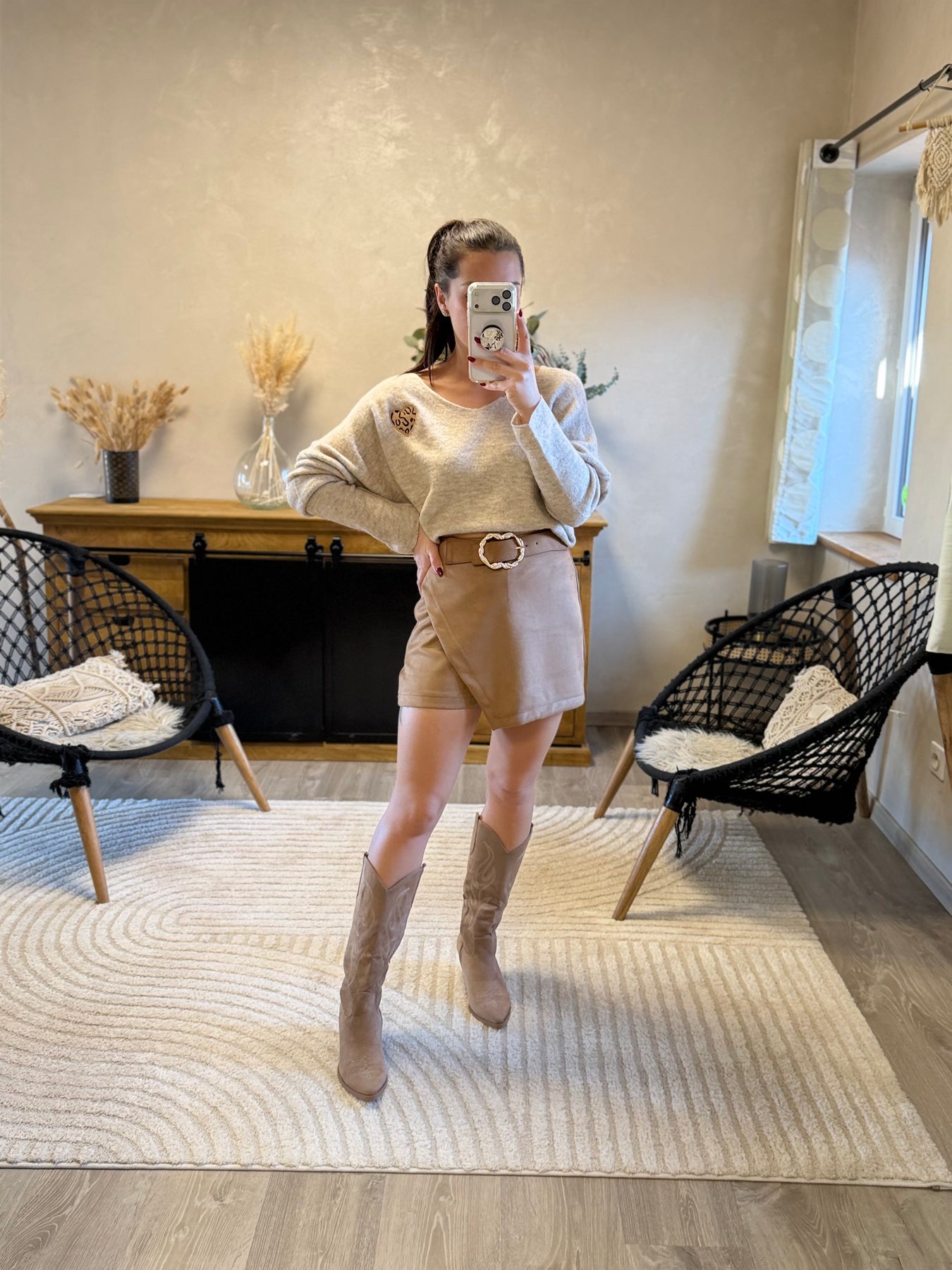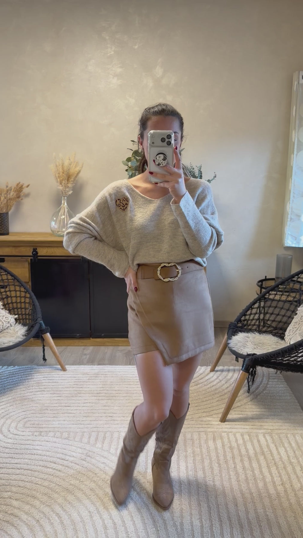 Il se porte aussi bien rentré dans une jupe-short Amanda pour un look féminin et tendance, qu’avec un jean brut pour un style casual chic. Un indispensable pour créer des looks doux, chauds et modernes à la fois ☕✨