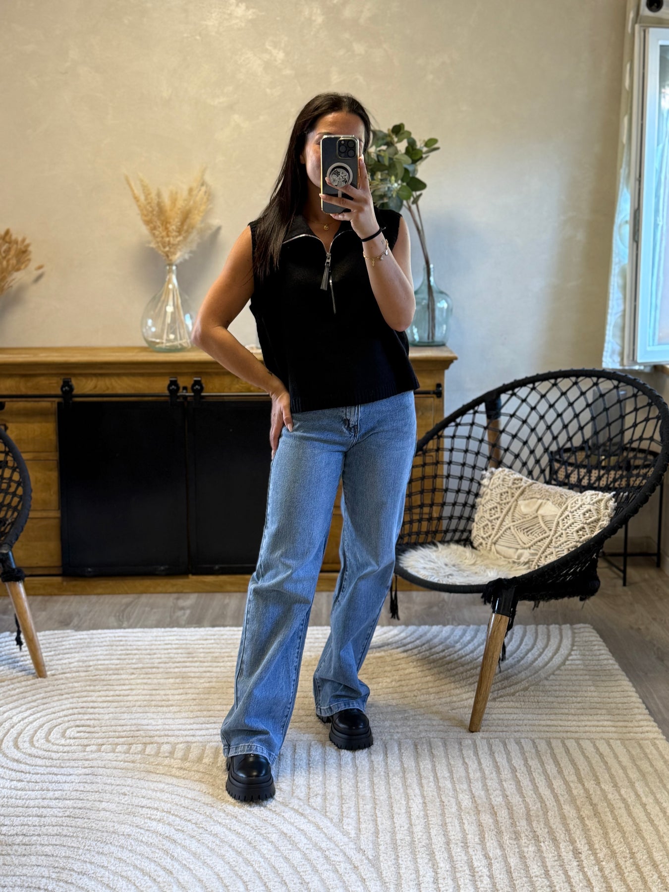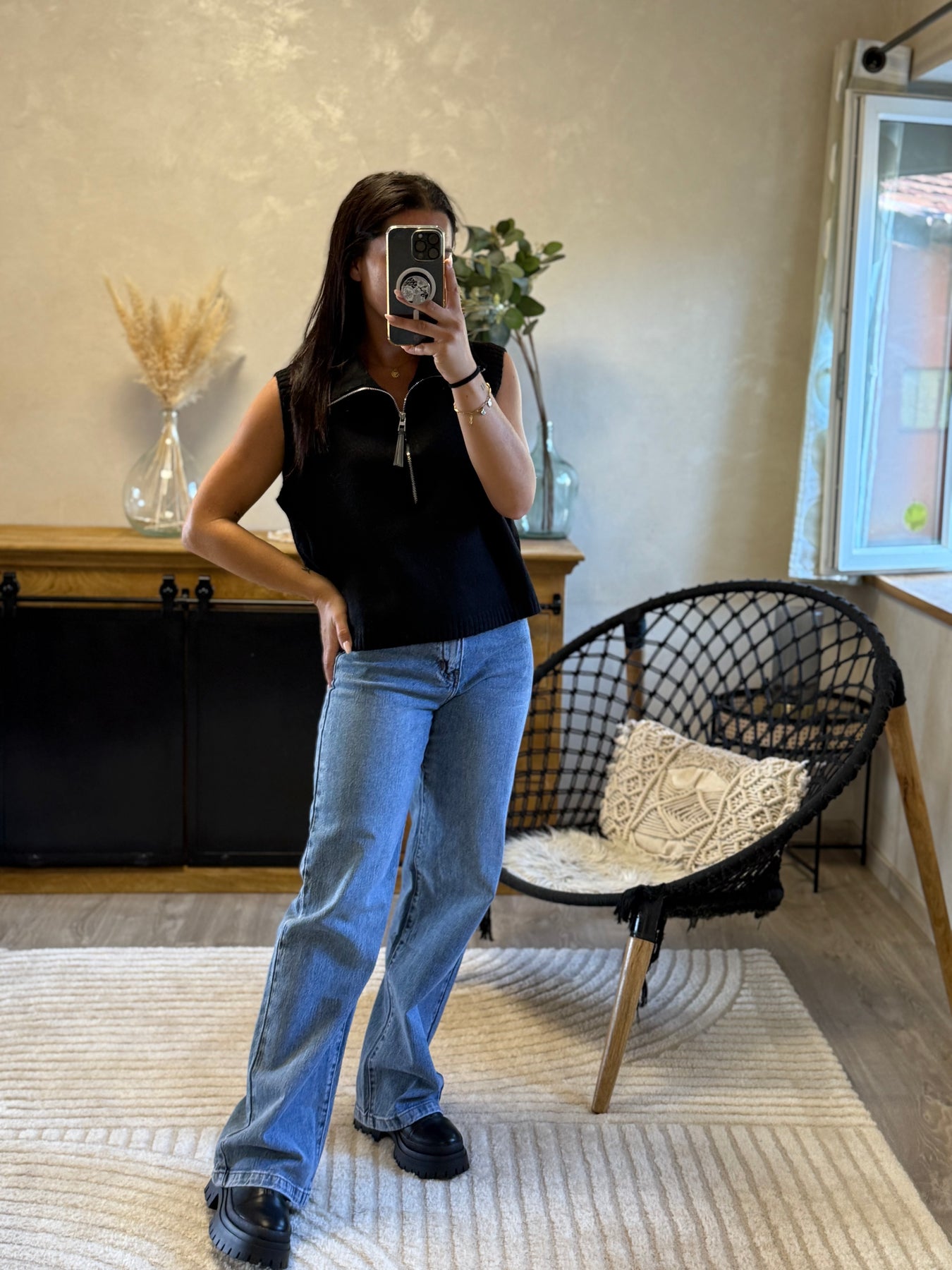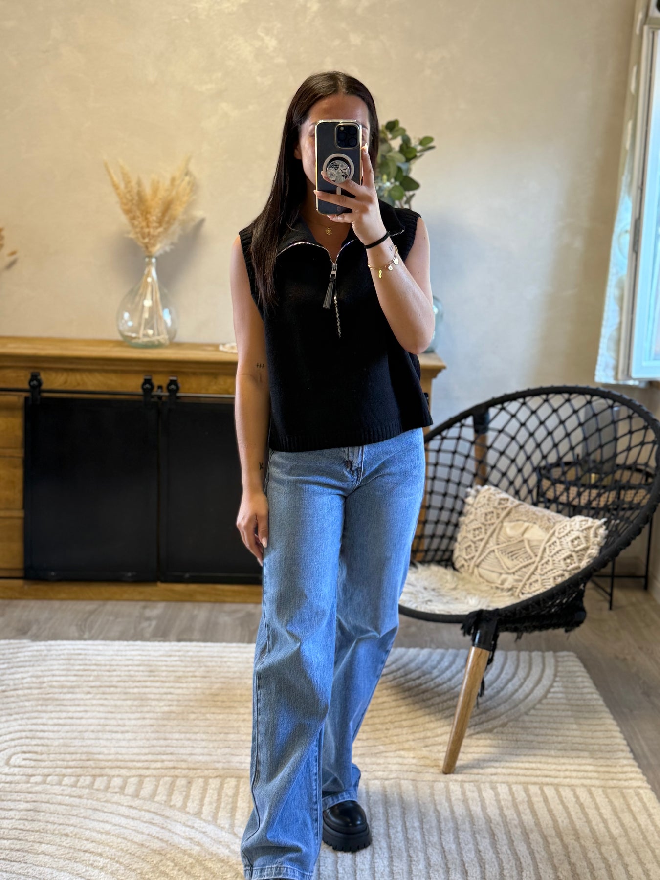 Le pull Tilla est parfait pour un look layering tendance ✨. On craque pour son col zippé qui apporte une touche sportive chic et son format sans manches, idéal à porter sur une chemise ou un top manches longues. Une pièce facile à adopter pour un style casual et élégant 🖤.