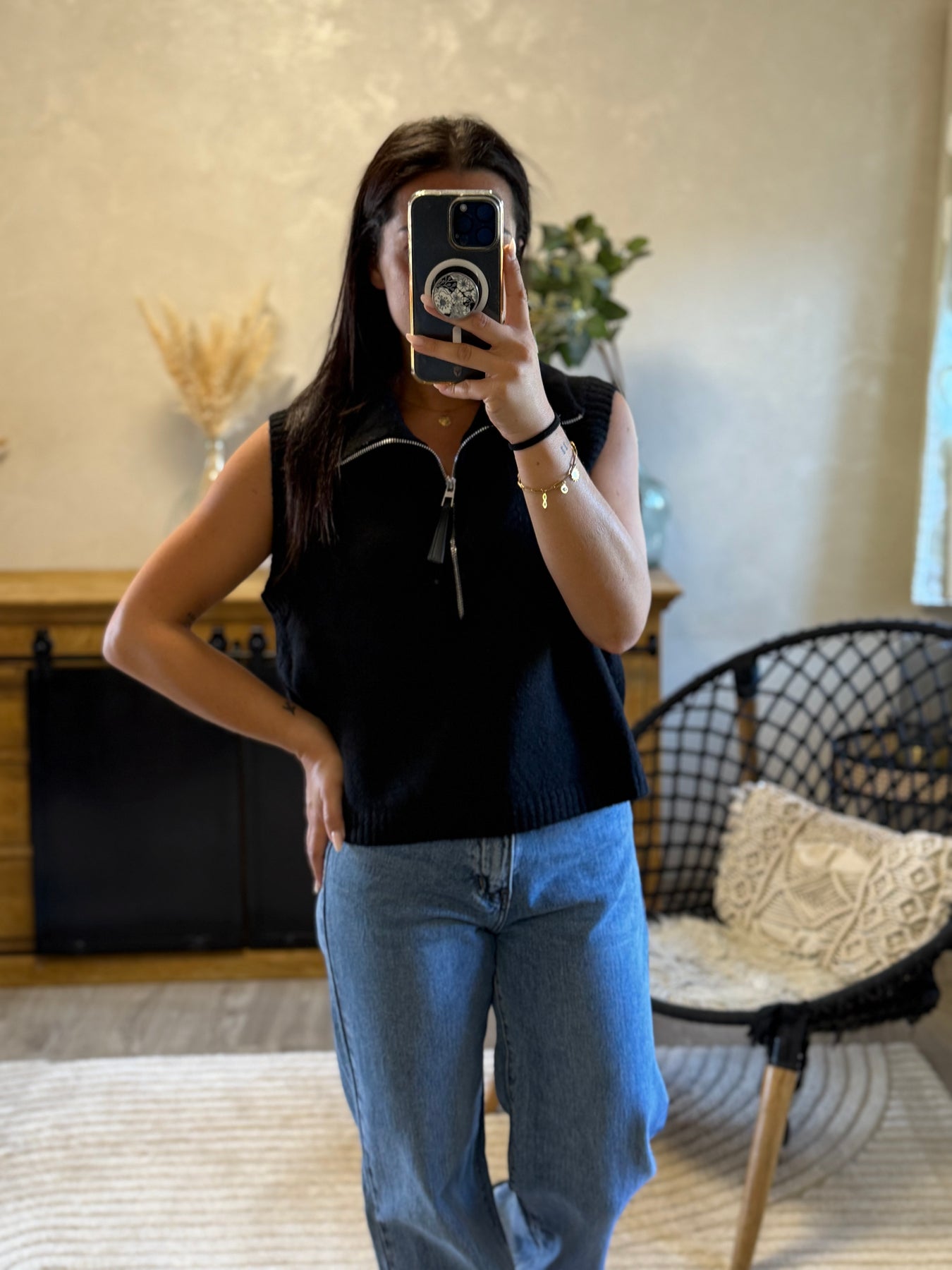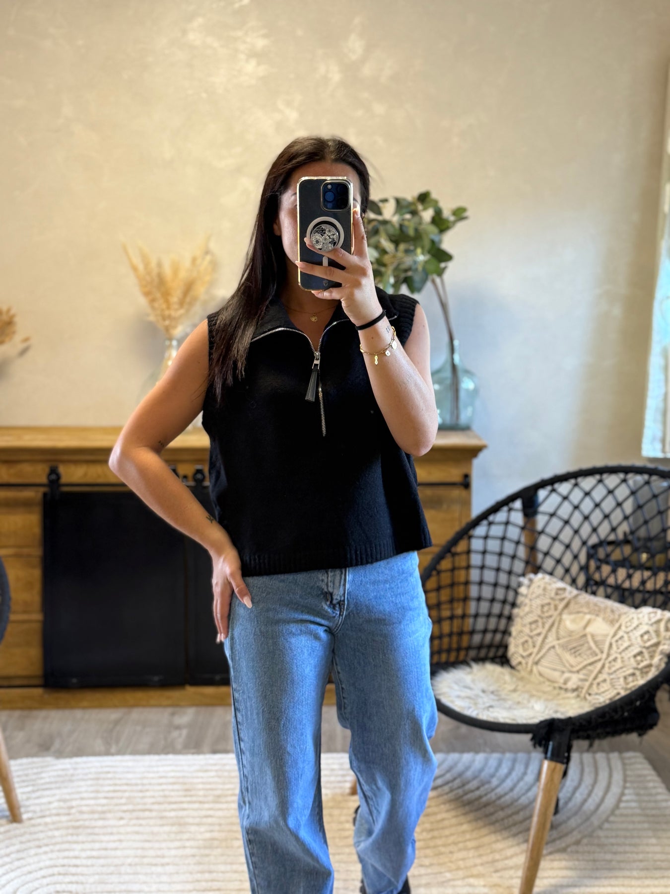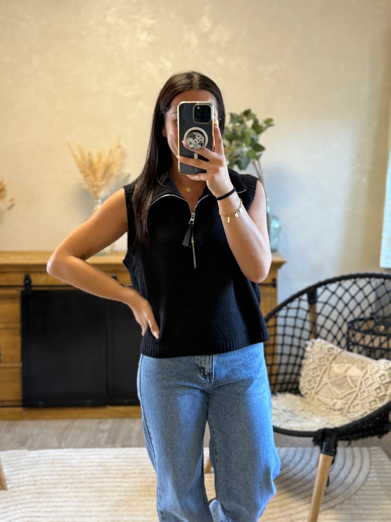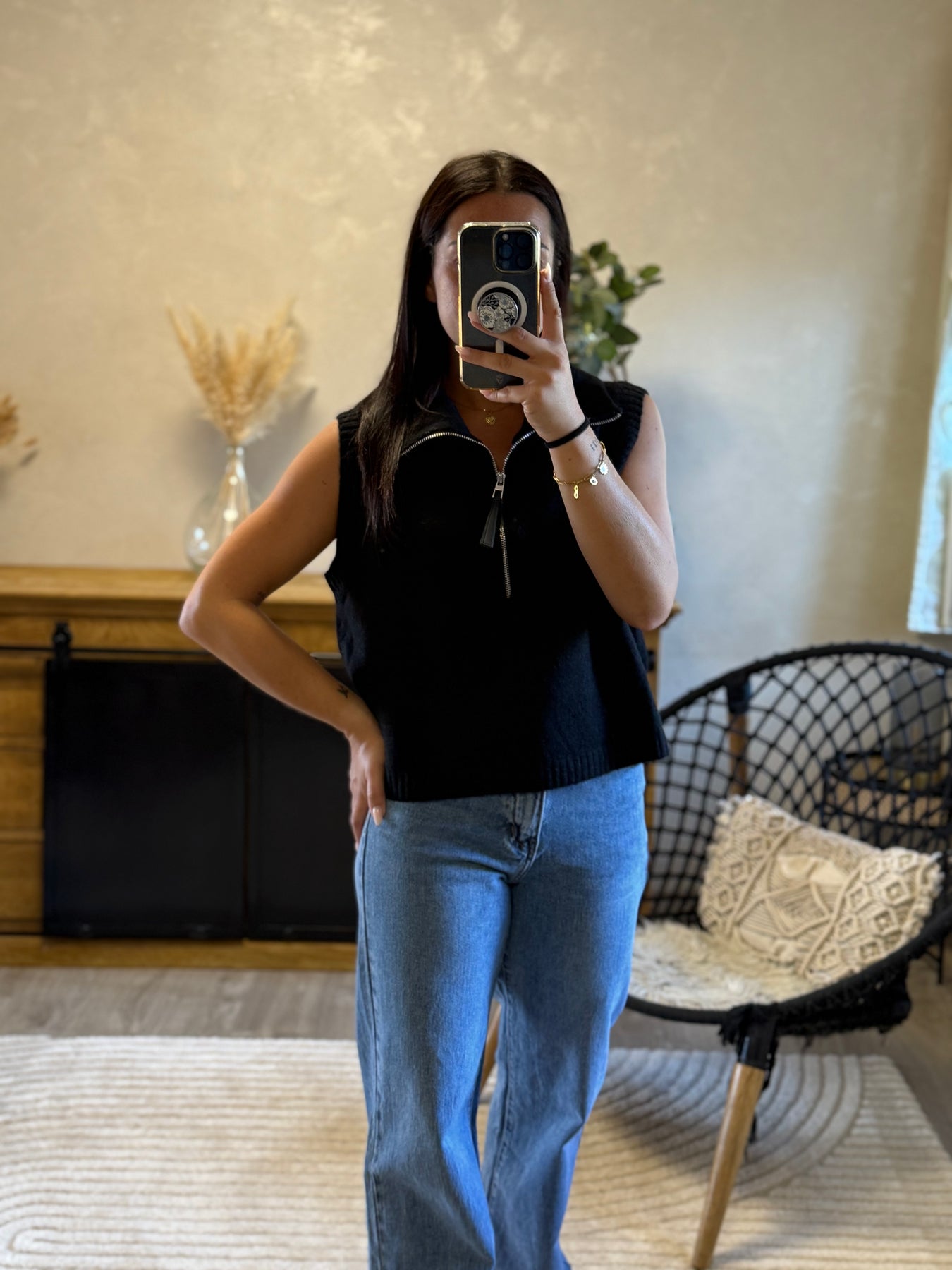 Le pull Tilla est parfait pour un look layering tendance ✨. On craque pour son col zippé qui apporte une touche sportive chic et son format sans manches, idéal à porter sur une chemise ou un top manches longues. Une pièce facile à adopter pour un style casual et élégant 🖤.
