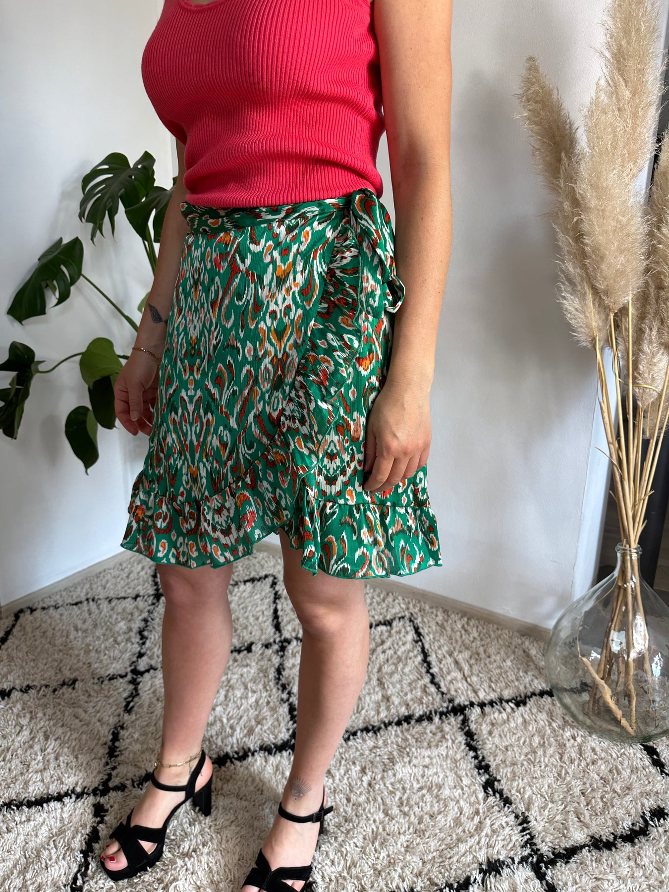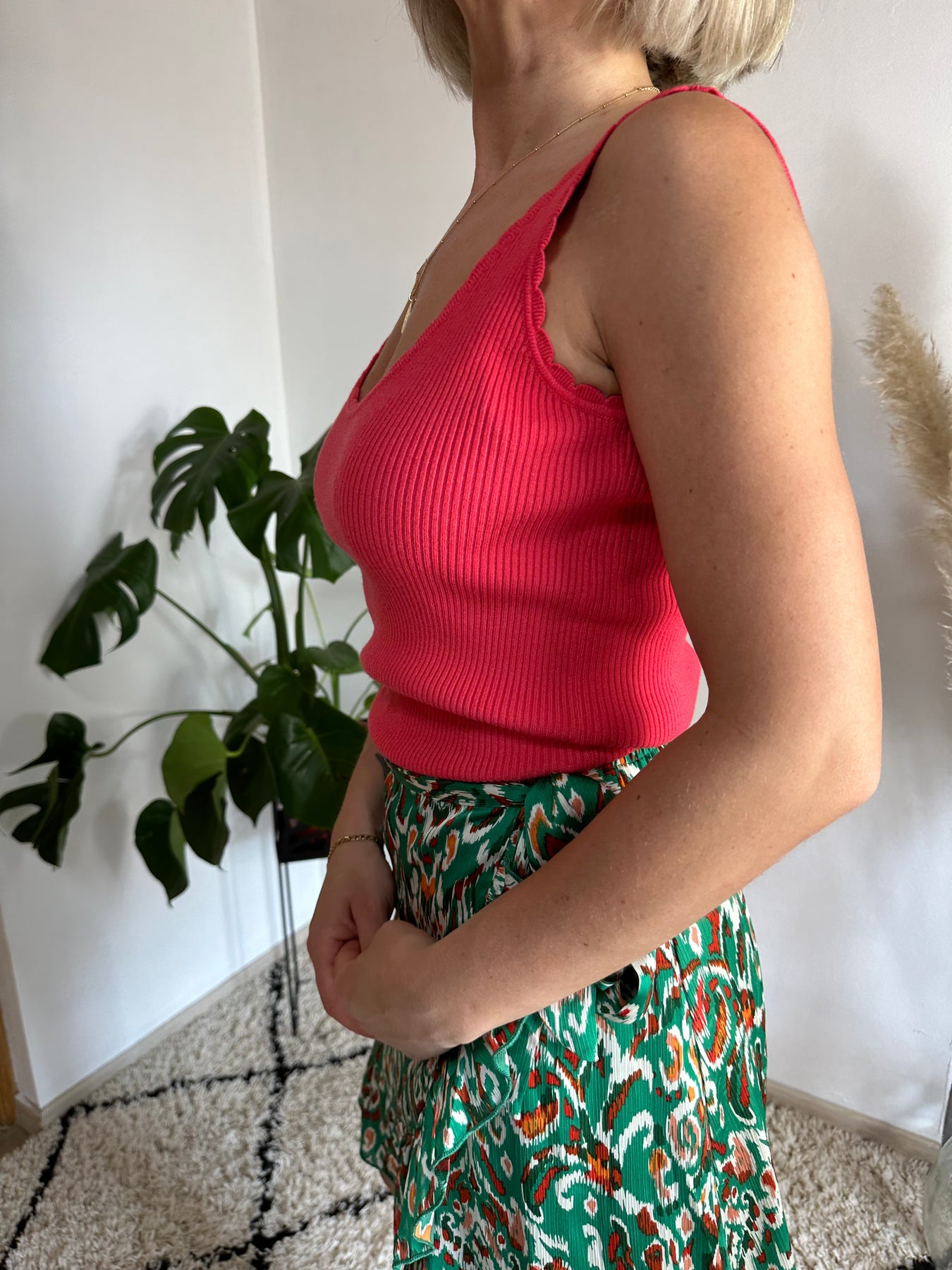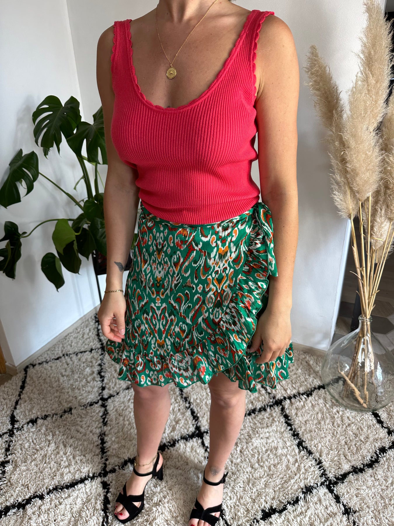 Elise mesure 1m62 et met du 36 elle porte la jupe en S , elle est associé au top Paolo corail