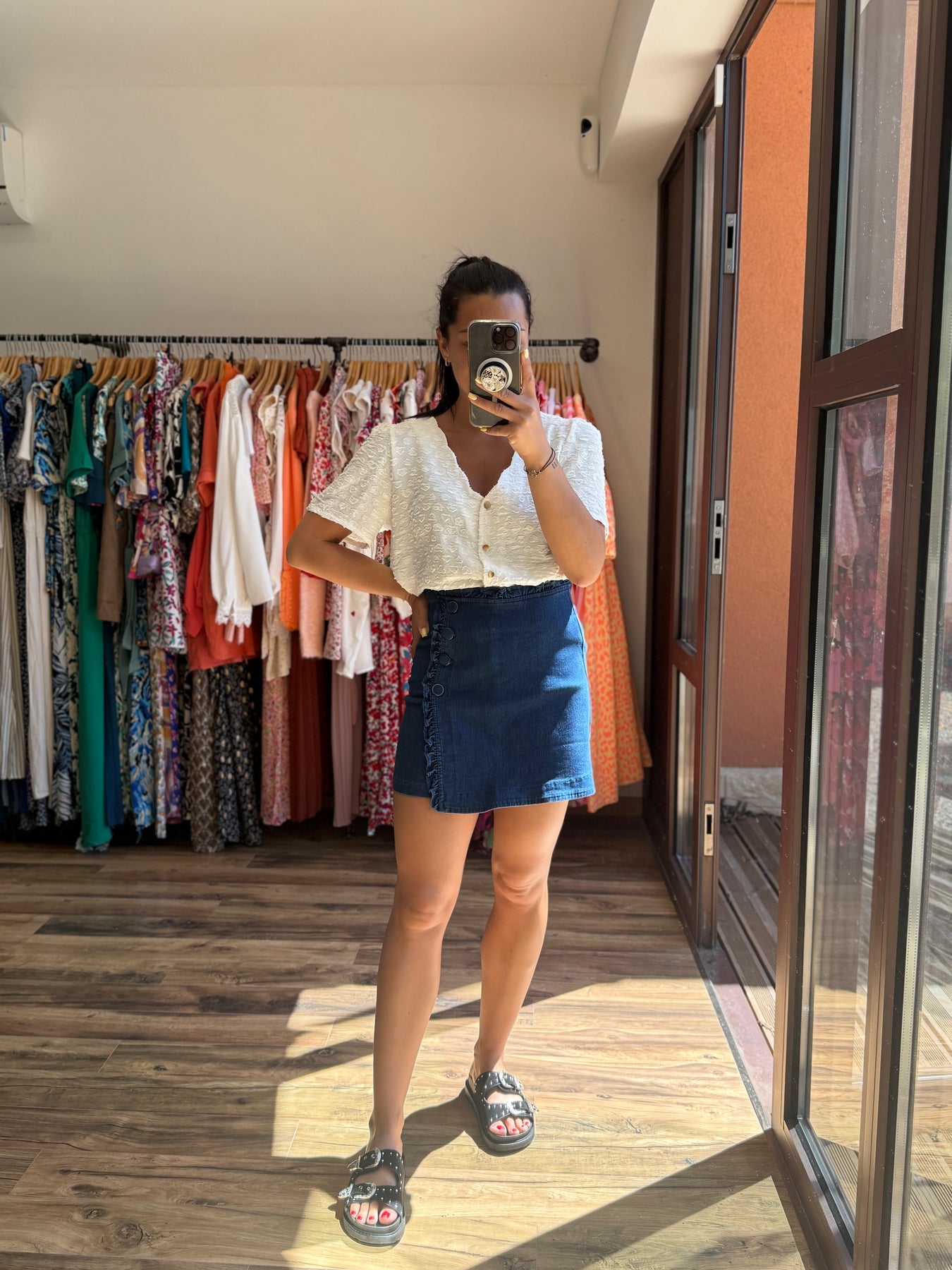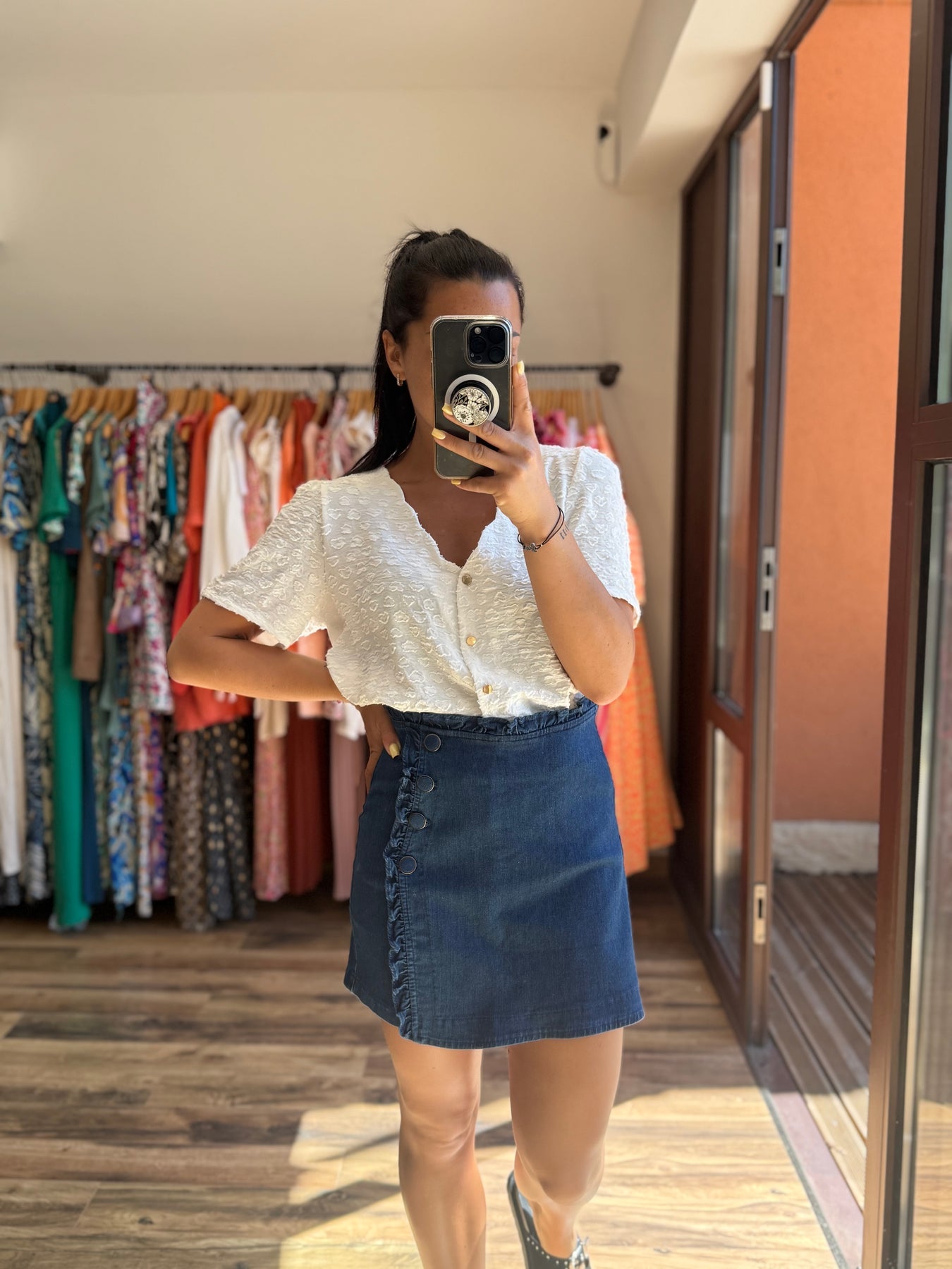 La chemise Gustave, c’est le petit bijou romantique à avoir dans son dressing ! On adore sa matière originale et ses jolis détails dorés. Portée avec un short ou une jupe taille haute, elle est parfaite pour un look délicat, tendance et facile à vivre au quotidien.