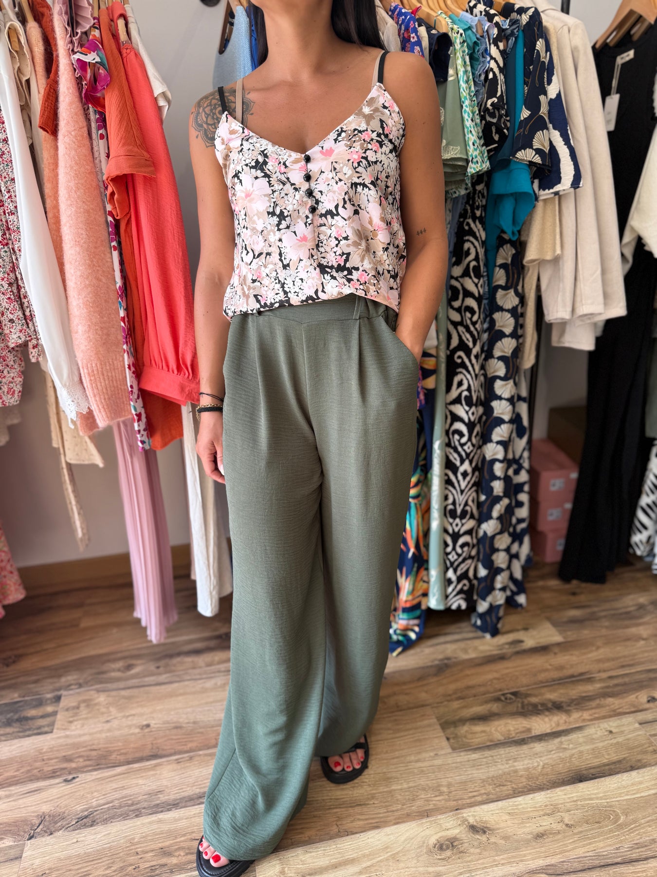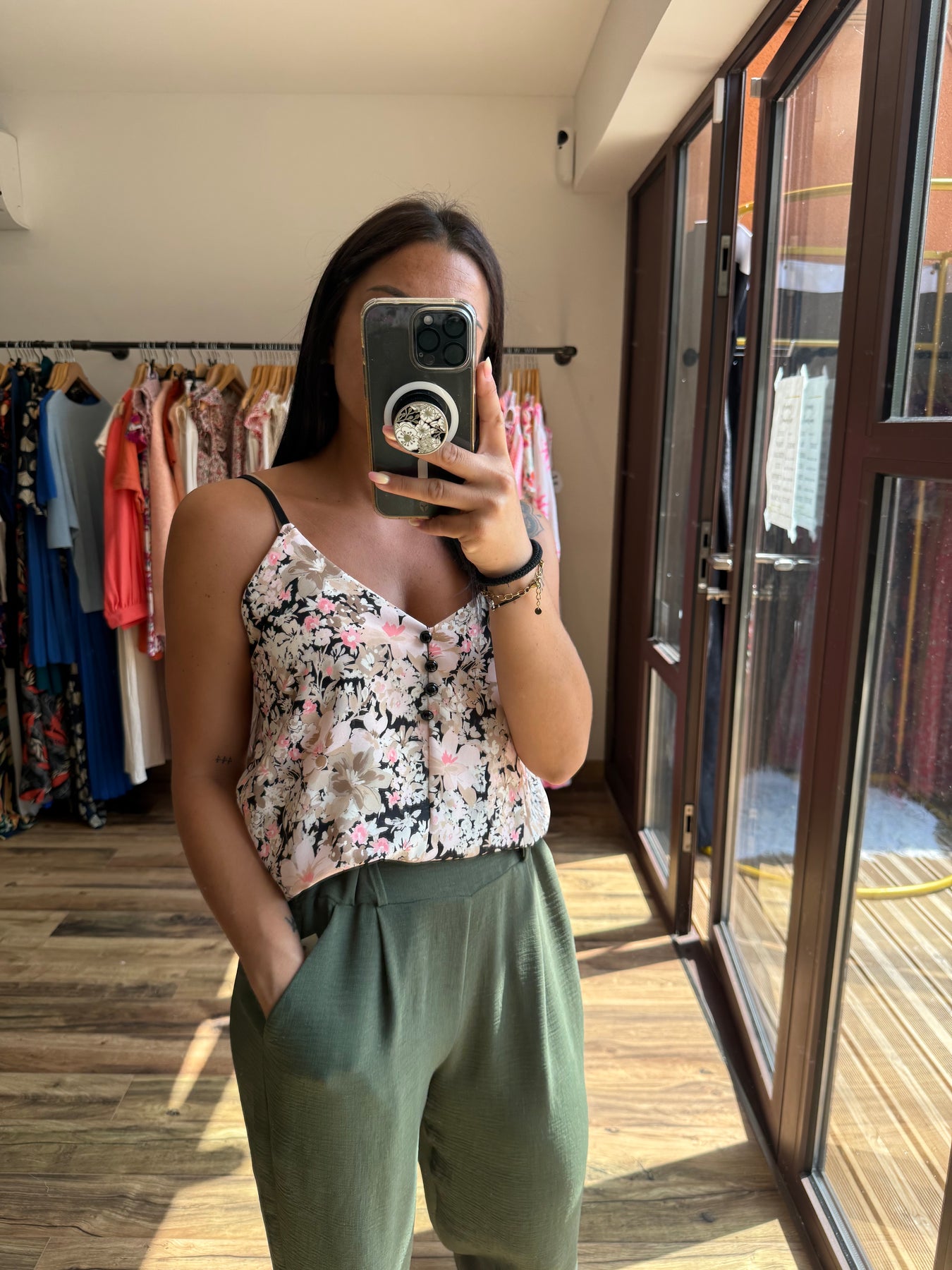 Un petit top léger et féminin qui se porte aussi bien en journée qu’en soirée. Son imprimé fleuri rehausse immédiatement le look. On l’adore avec le pantalon Eliam kaki pour une silhouette fluide, chic et confortable 💐