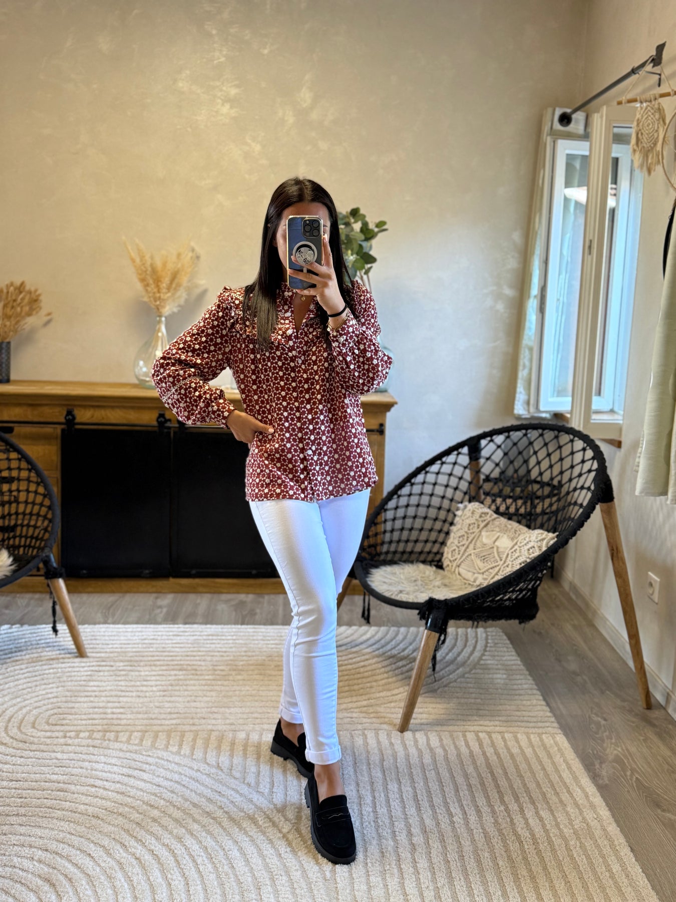 La chemise Sergio allie le charme rétro des fleurs à des détails raffinés (dentelle, volants) qui font toute la différence. Elle se porte aussi bien avec un jean clair pour une allure printanière qu’avec un pantalon noir pour une touche plus habillée. Une pièce féminine et pleine de caractère qui ne passera pas inaperçue 🌸.