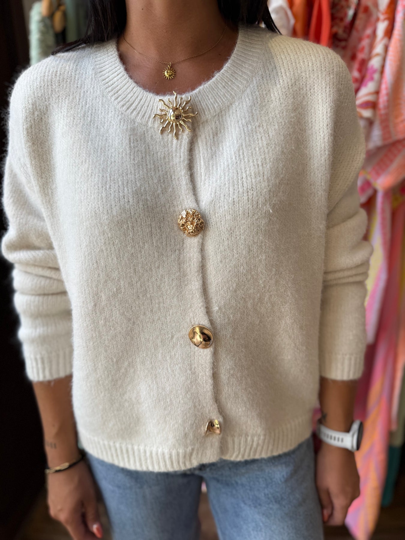• Détails : boutons bijoux dorés, chacun unique ✨