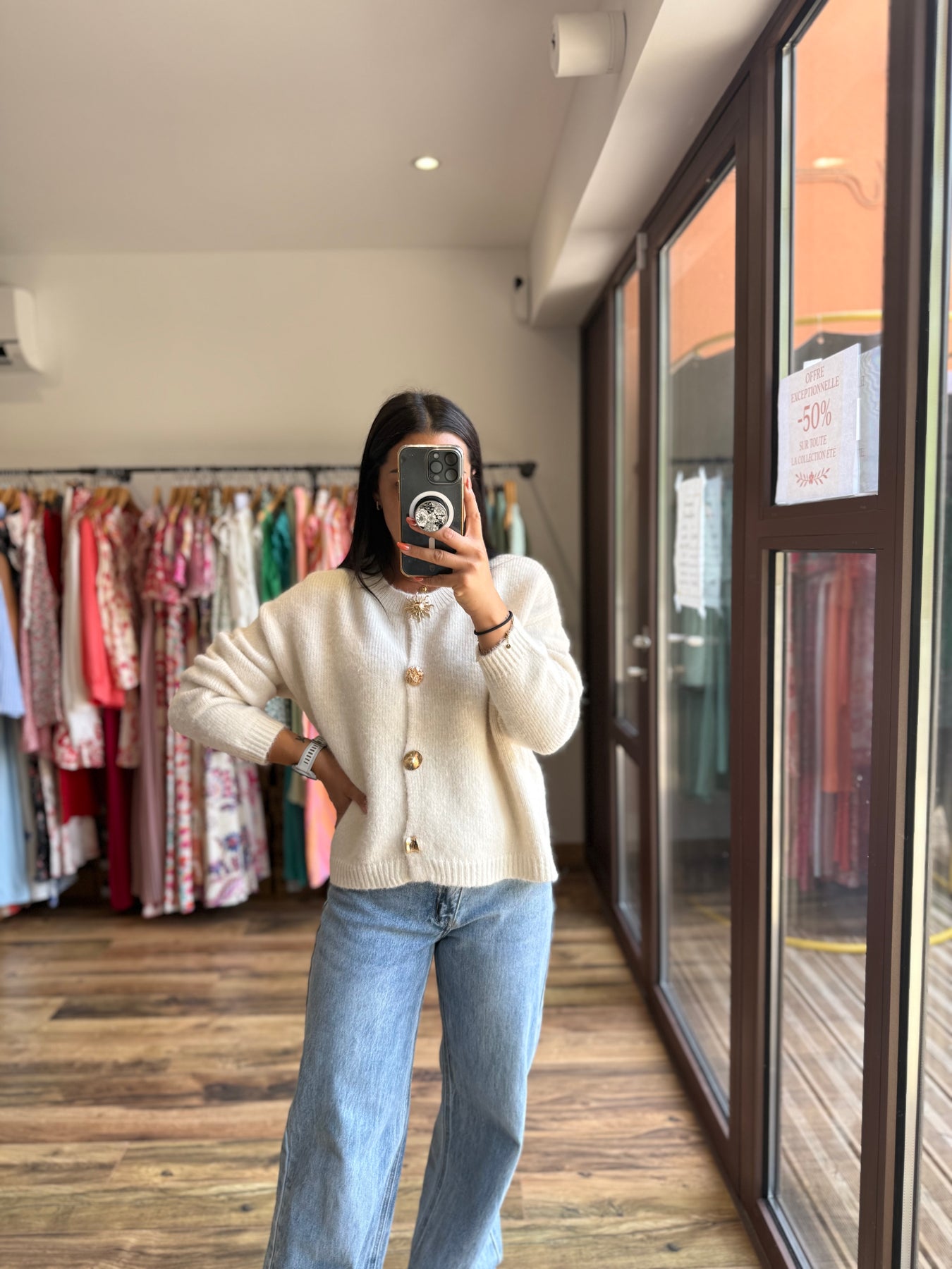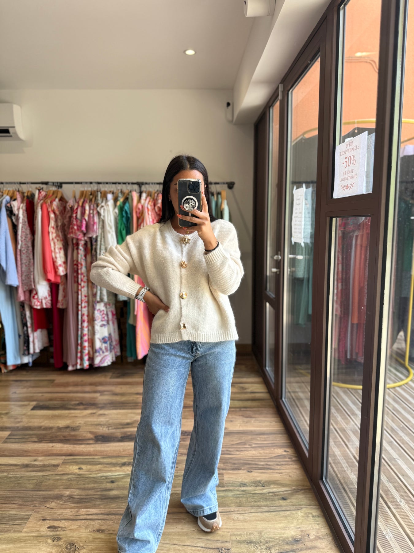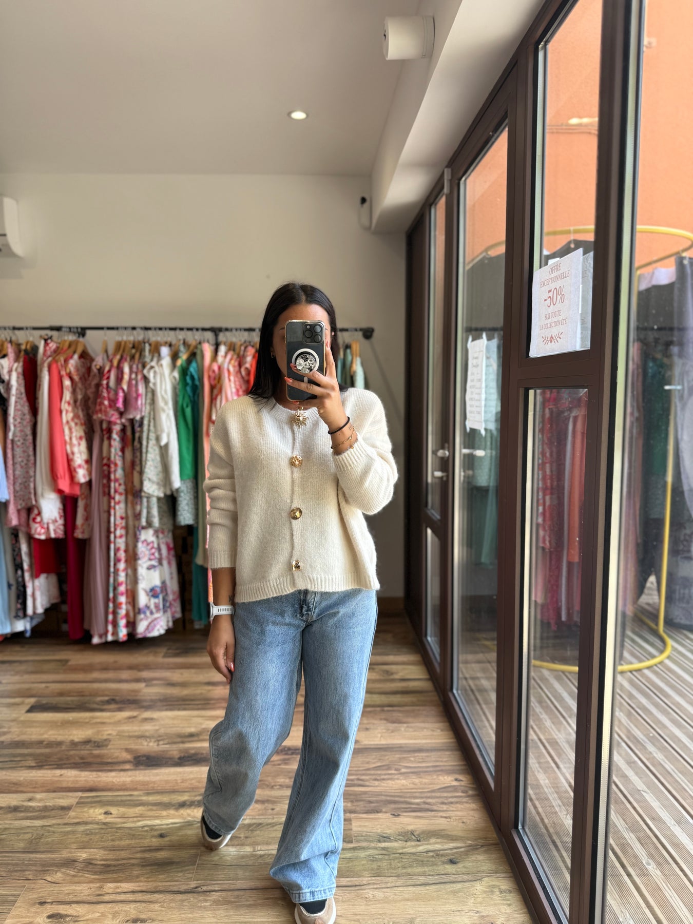 Le gilet Max est la pièce élégante qui fait toute la différence dans un look. Ses boutons bijoux dorés lui donnent une allure raffinée et tendance, parfaite pour rehausser une tenue simple. On l’adore porté avec un jean pour un style casual chic, ou sur une robe fluide pour une touche sophistiquée. Doux et confortable, c’est un essentiel pour la mi-saison et l’hiver ❄️.