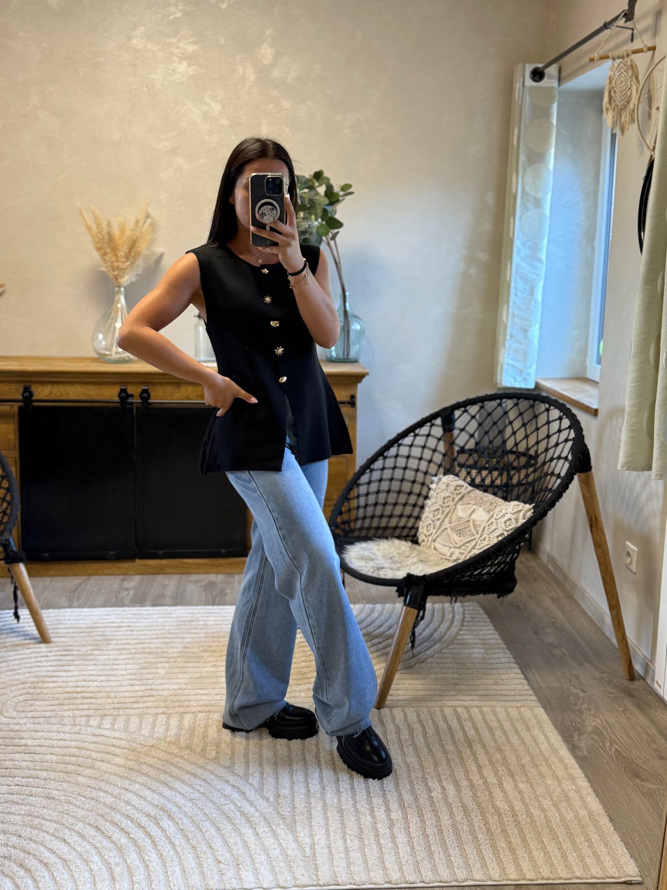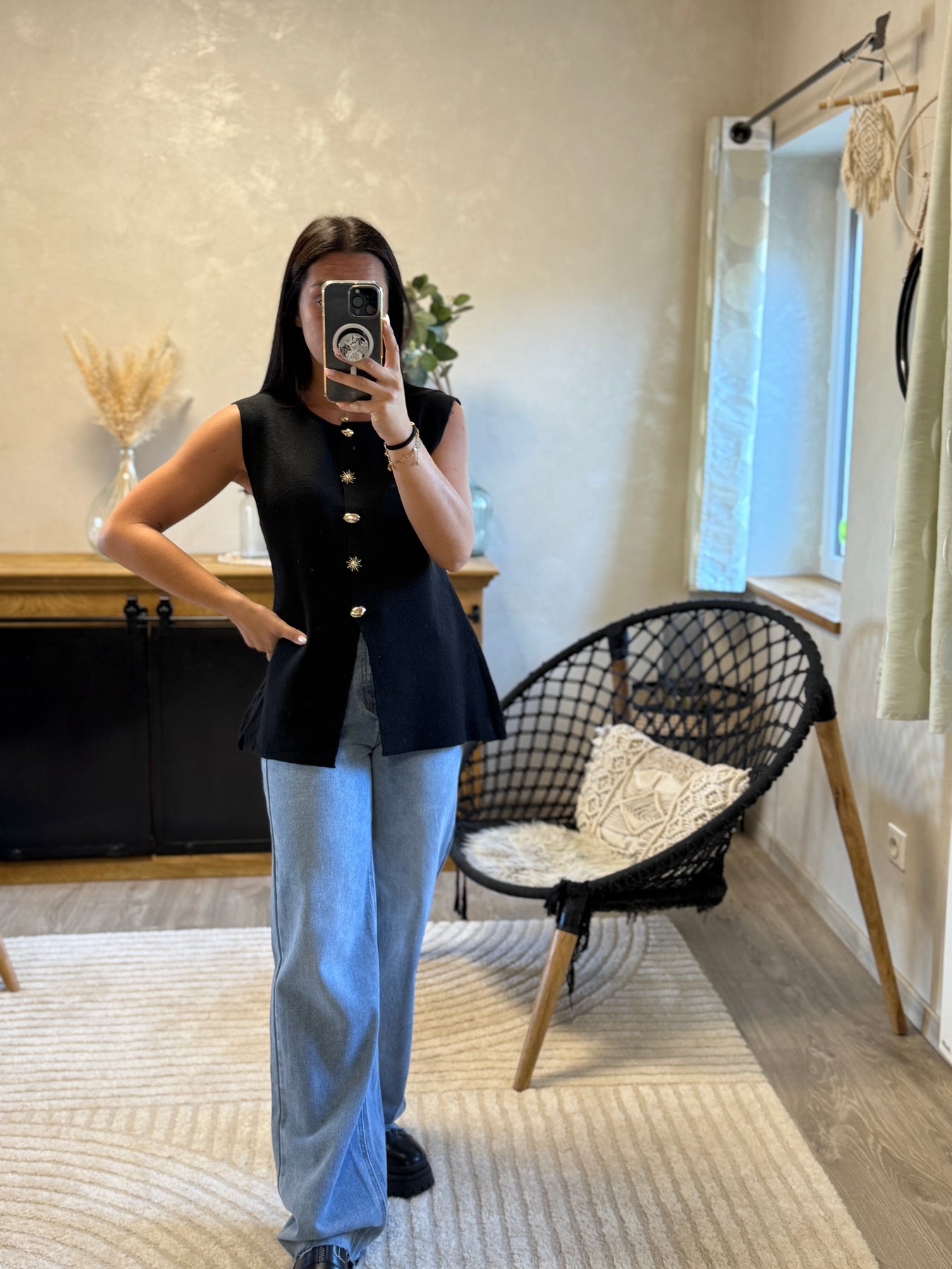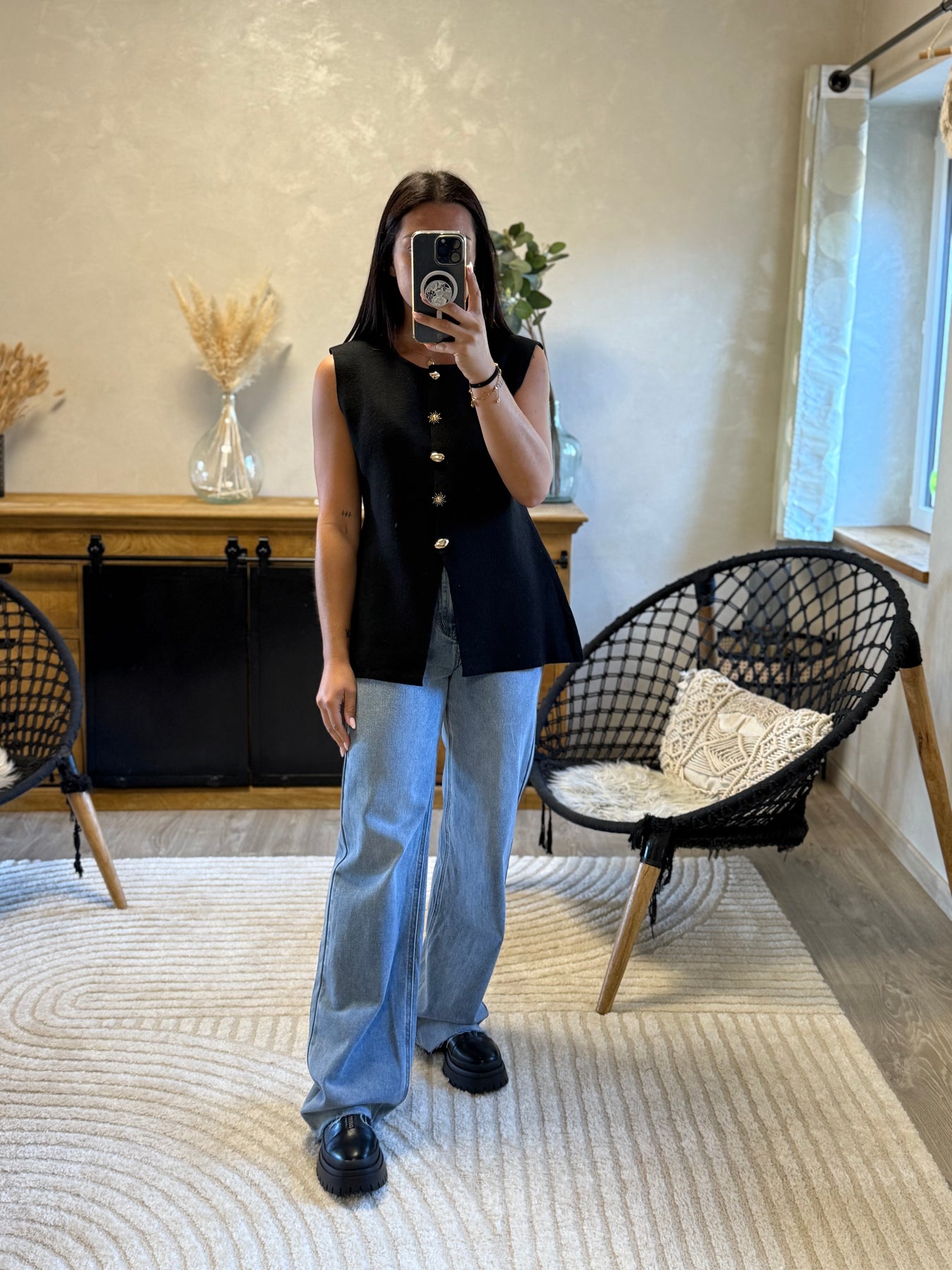 Le Sady noir est une pièce élégante et moderne qui traverse les saisons sans jamais se démoder. Ses boutons dorés soleil apportent une touche précieuse et lumineuse, contrastant parfaitement avec le noir. On l’aime porté avec un jean clair pour un look casual chic, ou avec une jupe satinée pour une allure encore plus sophistiquée 🌿.