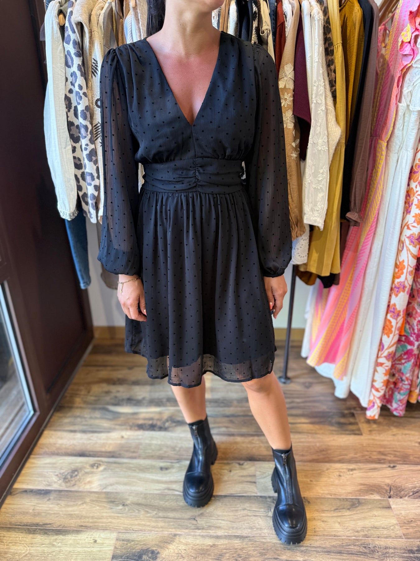 ✨ On adore cette petite robe noire chic et facile à porter ! Son tissu léger et fluide, sublimé par un délicat plumetis, met en valeur la silhouette sans effort. Parfaite aussi bien avec des bottines plates pour un look casual qu’avec des talons pour une soirée élégante.
