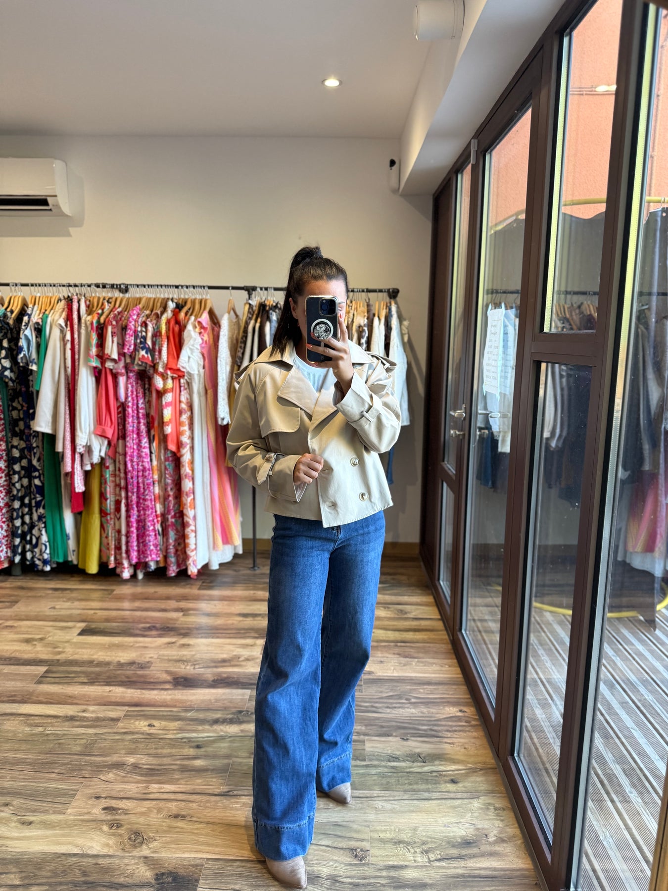 La veste trench est un incontournable du dressing féminin. On aime son style intemporel qui s’adapte à toutes les occasions : chic sur une robe, ou plus décontracté avec un jean et des baskets. Sa coupe courte modernise la silhouette tout en conservant l’élégance du trench classique. Une pièce parfaite pour la mi-saison 🌸.