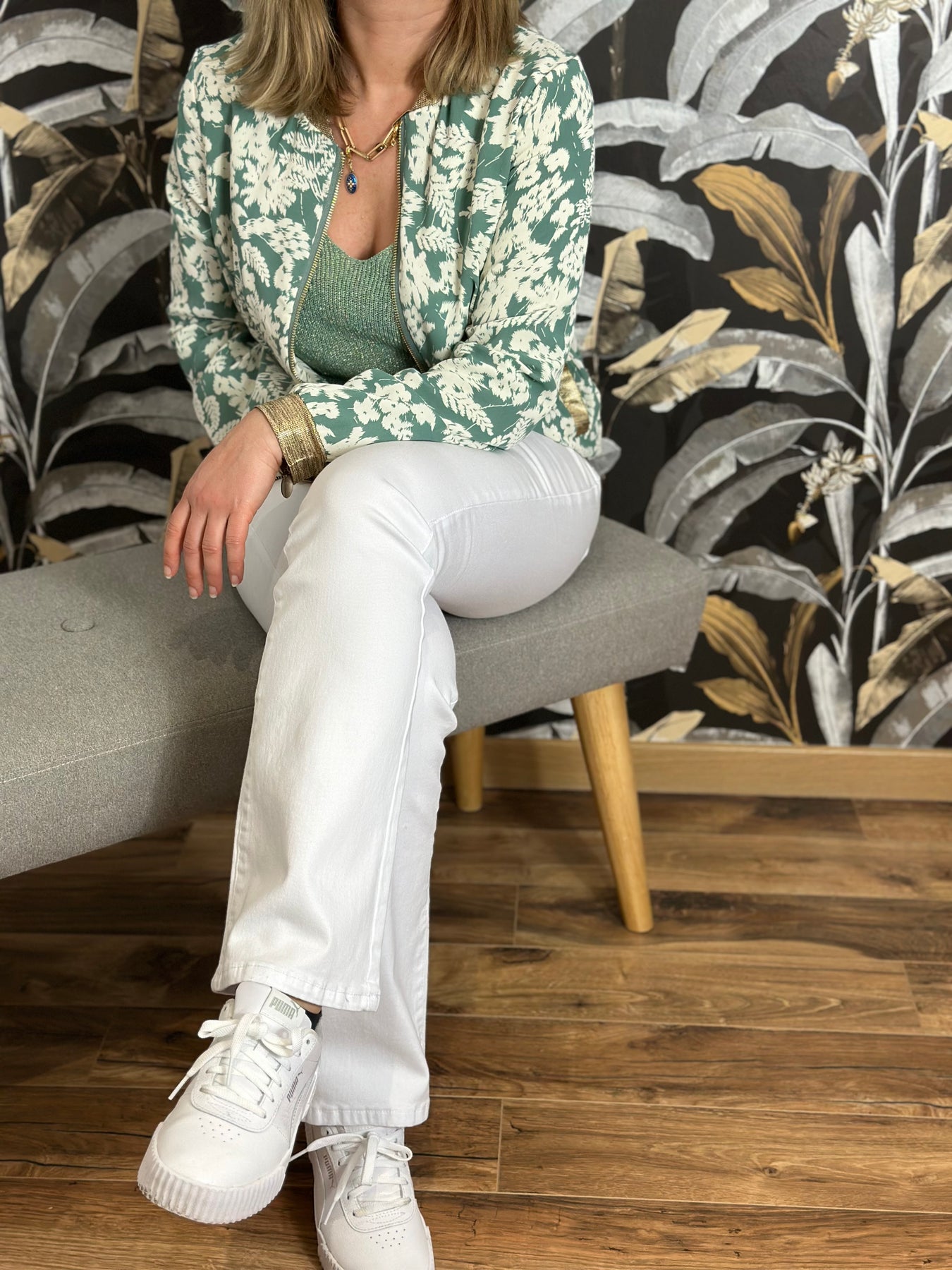 Coloris vert clair blanc et doré