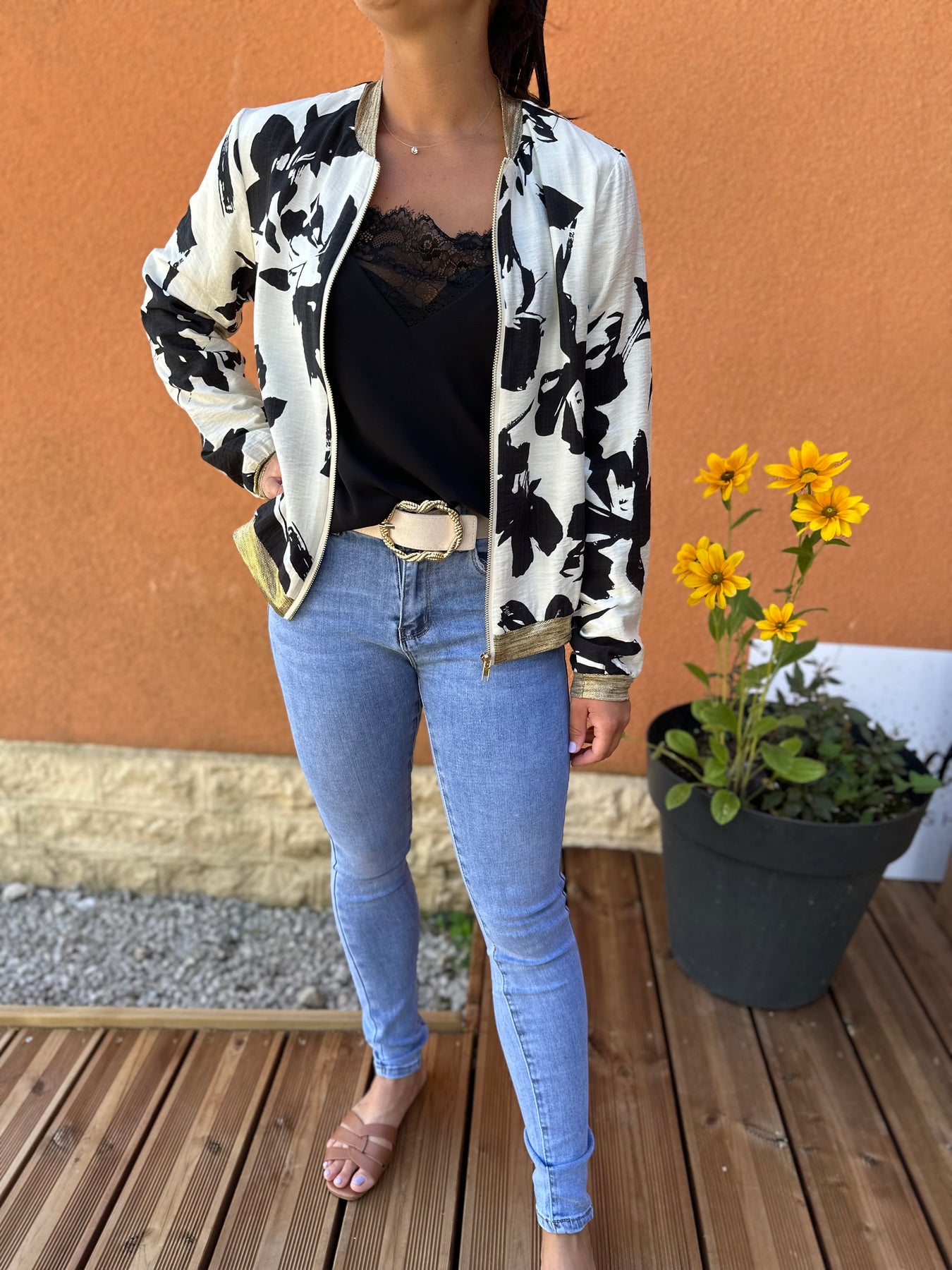 manches col et bas du bombers doré élastique