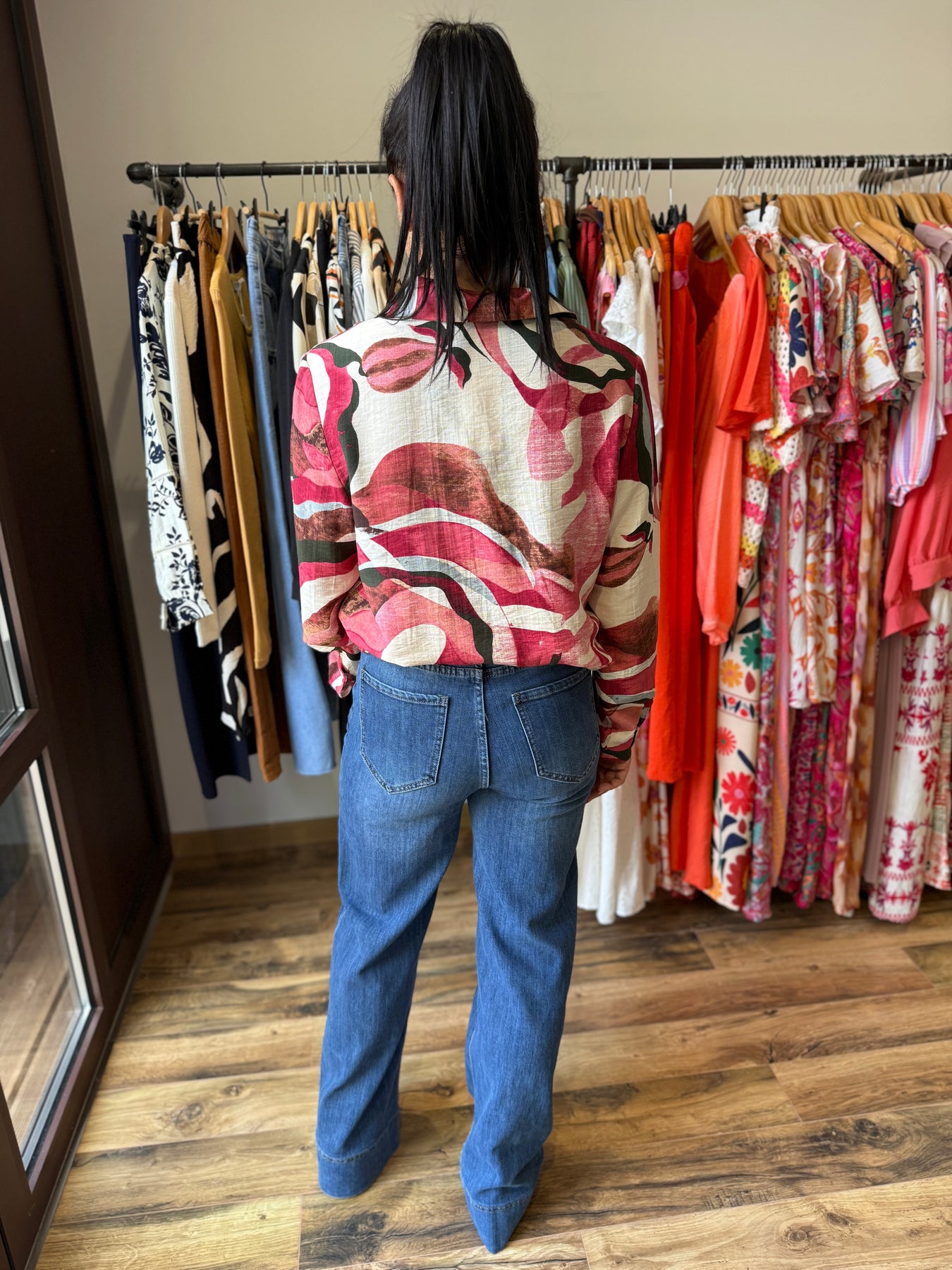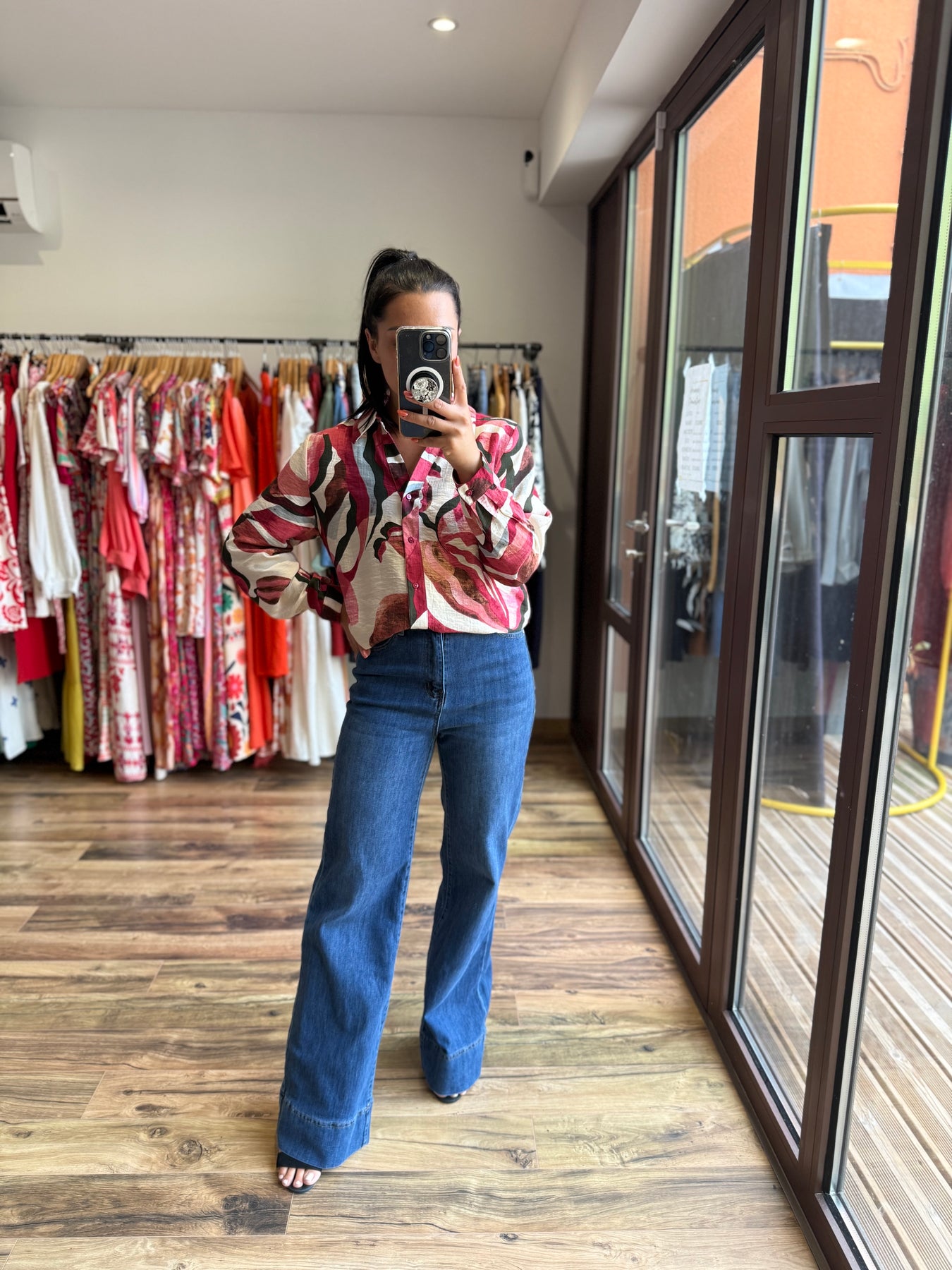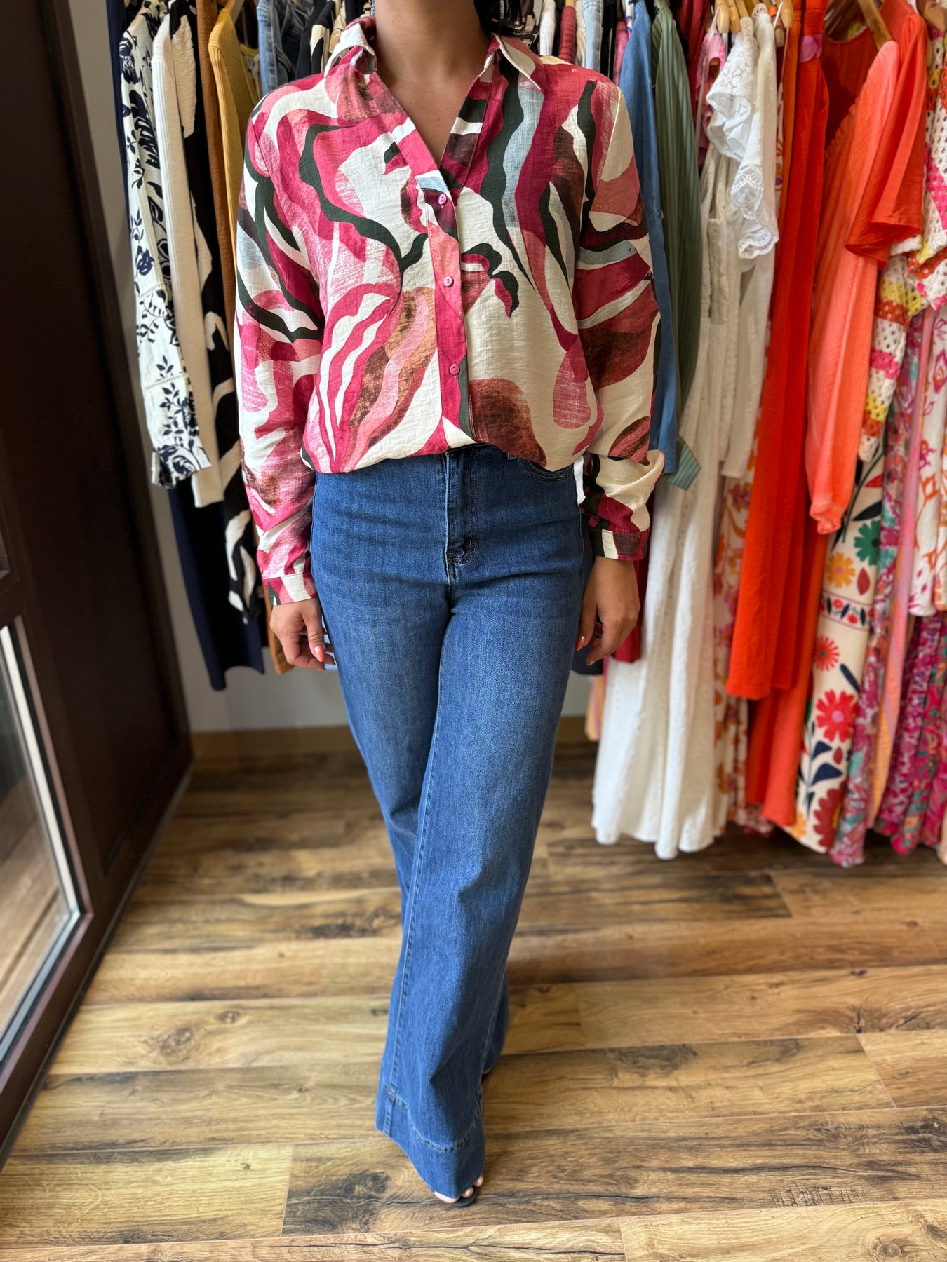 Une chemise qui met de la couleur et de l’originalité dans vos looks ! 🌸 Parfaite pour réveiller un jean classique ou apporter une touche arty à une tenue simple. Fluide et confortable, elle se porte aussi bien rentrée dans un pantalon que ouverte sur un débardeur pour un style plus décontracté.