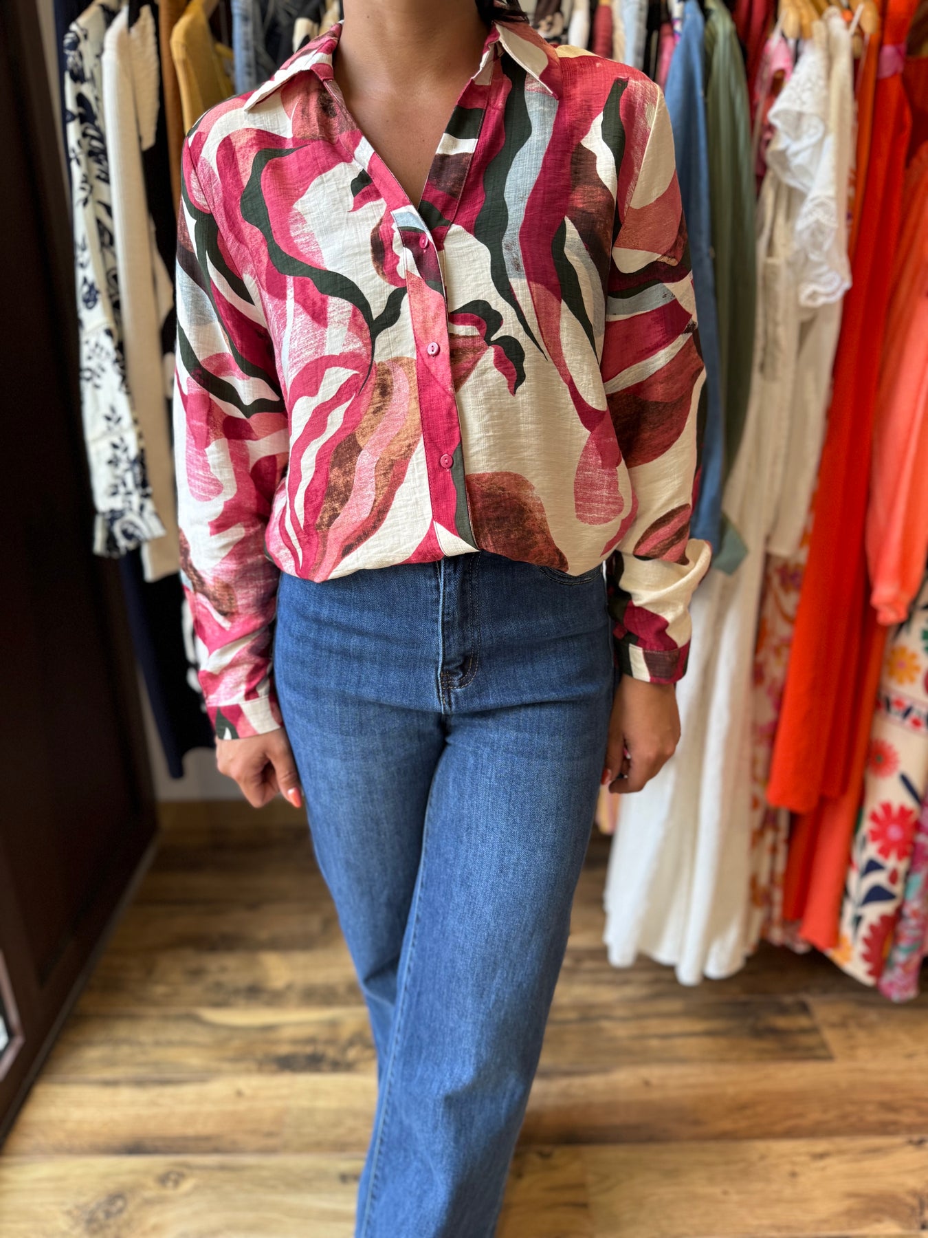 Chemise “Mitch” – Imprimé artistique rose & rouge
