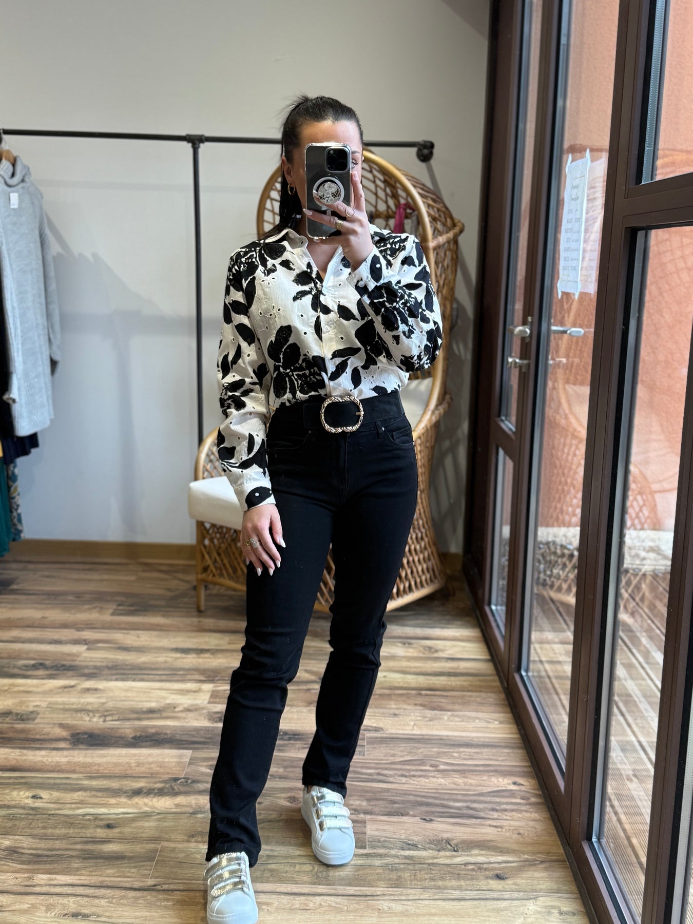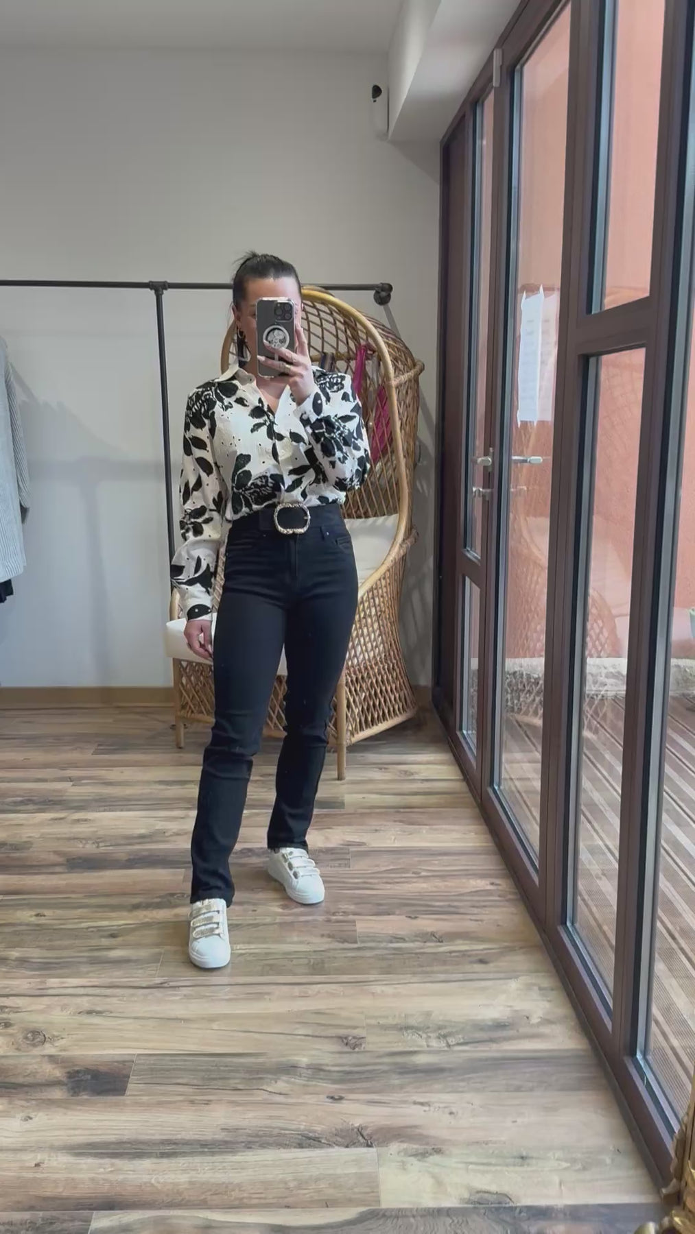 Alicia mesure 1m57 et porte la taille SM elle porte le jean Mollie noir