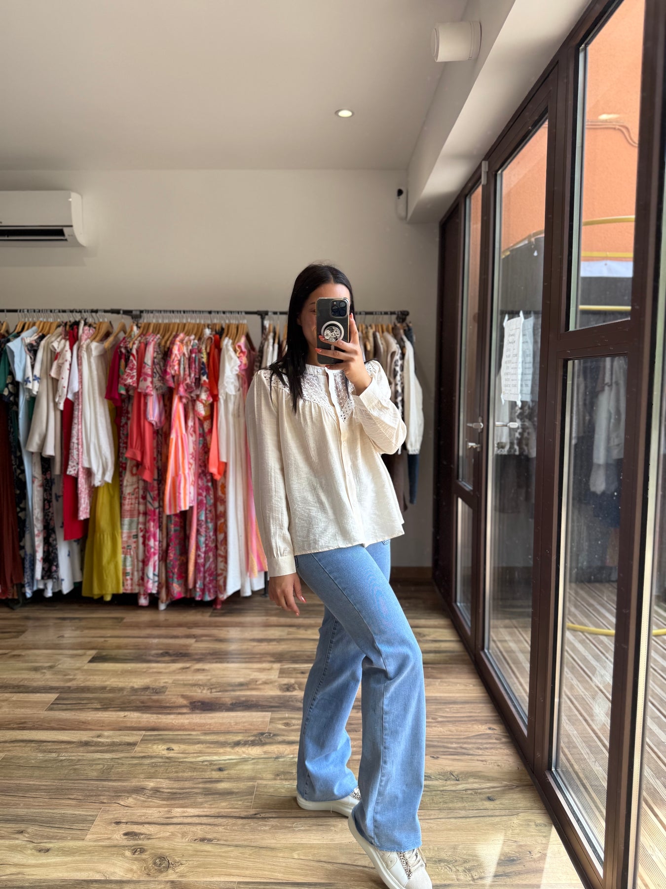 Un vrai bijou de féminité 💕 ! Avec ses jolis détails ajourés et sa broderie raffinée, la chemise Zapa se porte aussi bien avec un jean flare pour un look bohème chic qu’avec un pantalon tailleur pour une allure plus habillée.