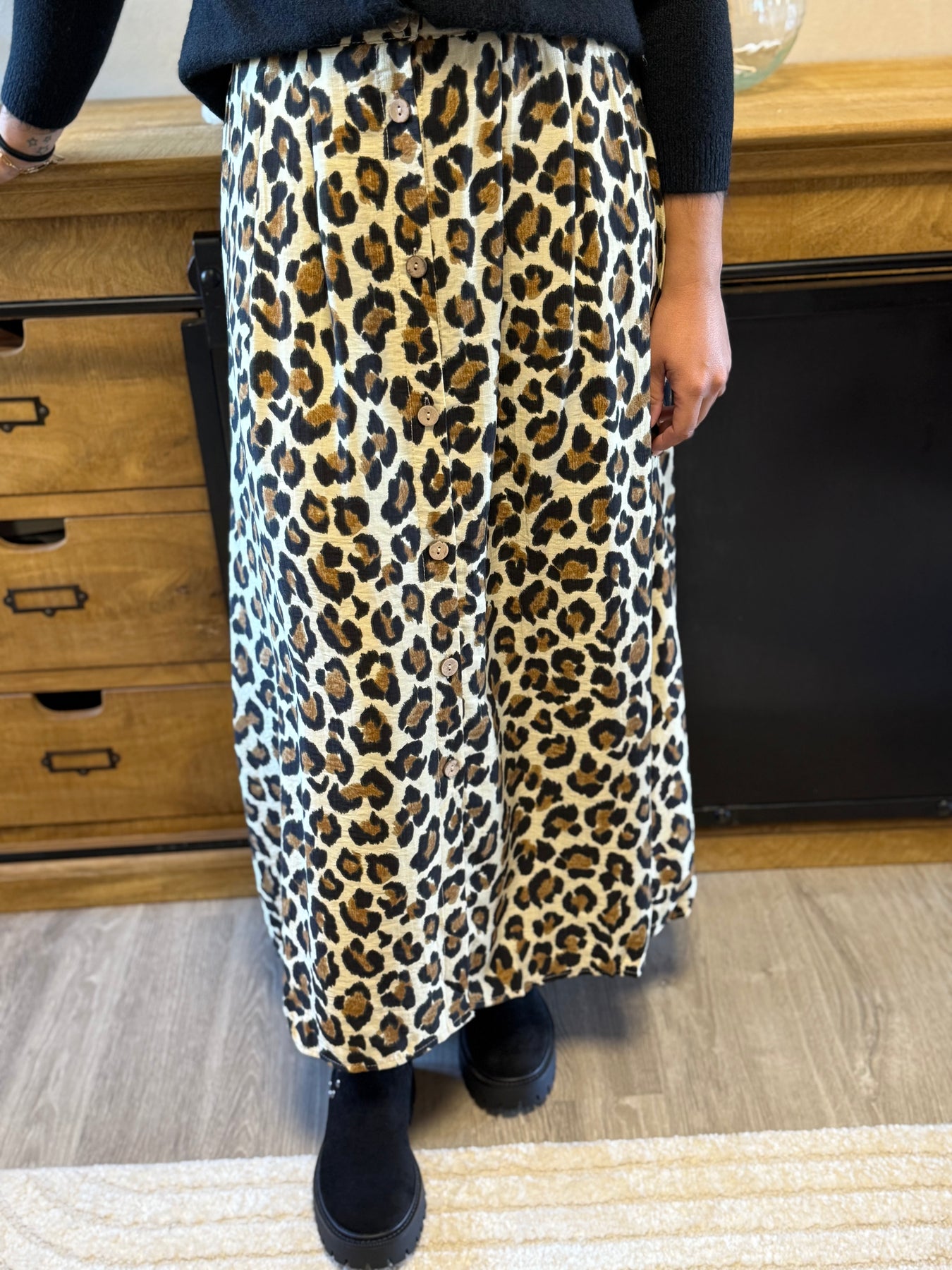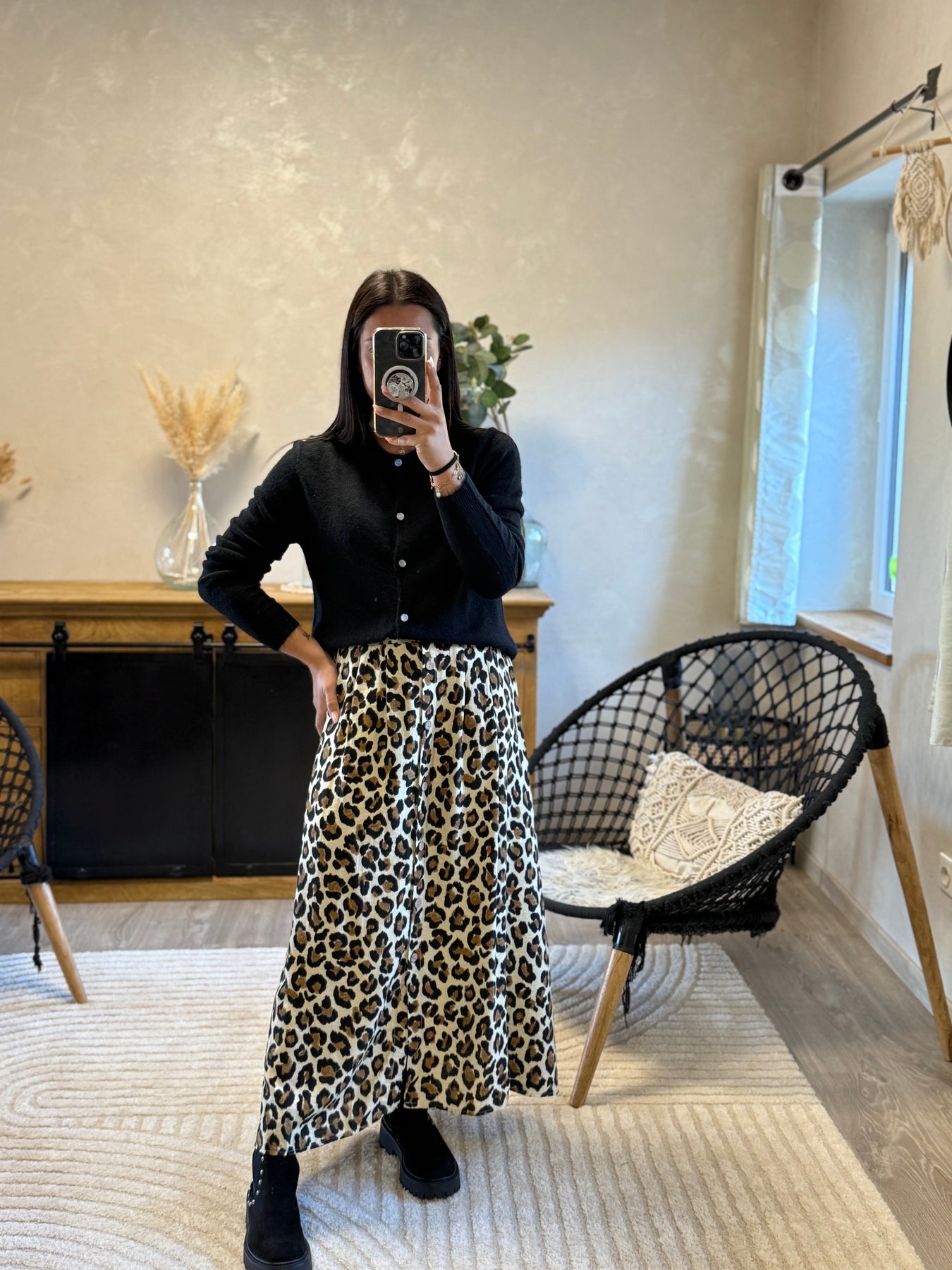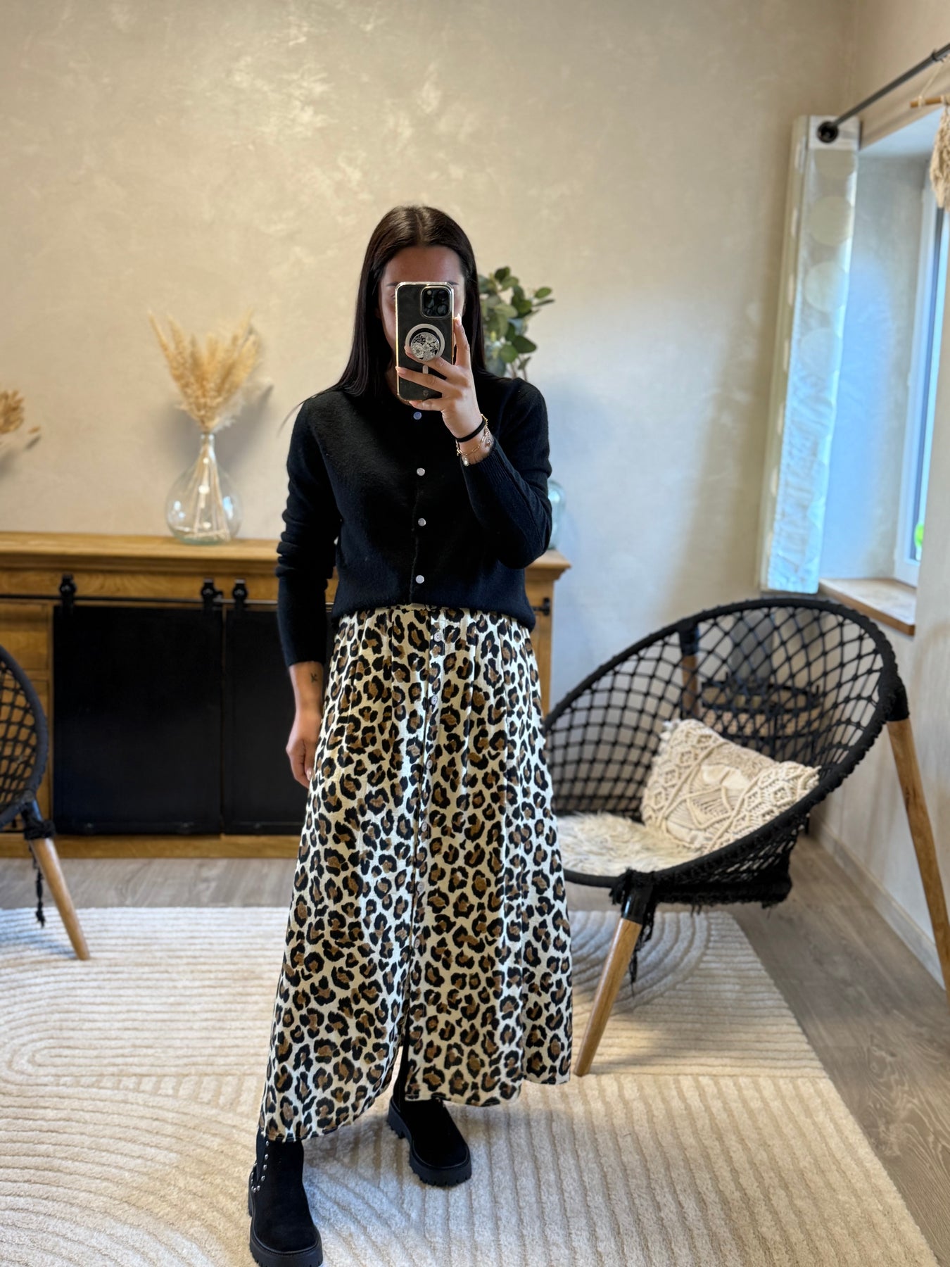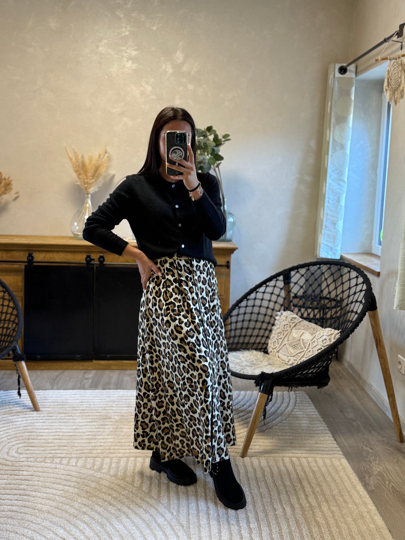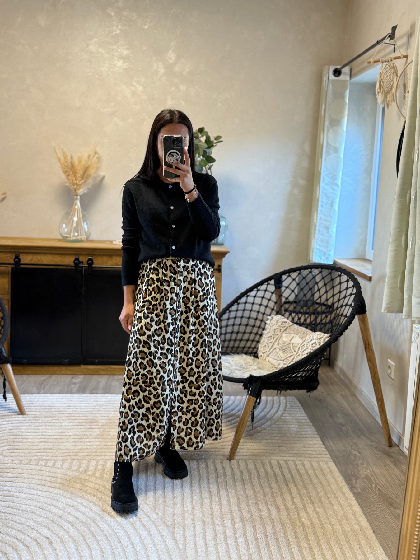 La jupe “Ony” est la pièce forte qui twiste vos basiques 🖤. Avec son imprimé léopard indémodable et sa coupe fluide, elle se porte aussi bien avec un débardeur noir et des baskets pour un look casual, qu’avec des bottines et une veste en cuir pour une allure rock chic 🔥.