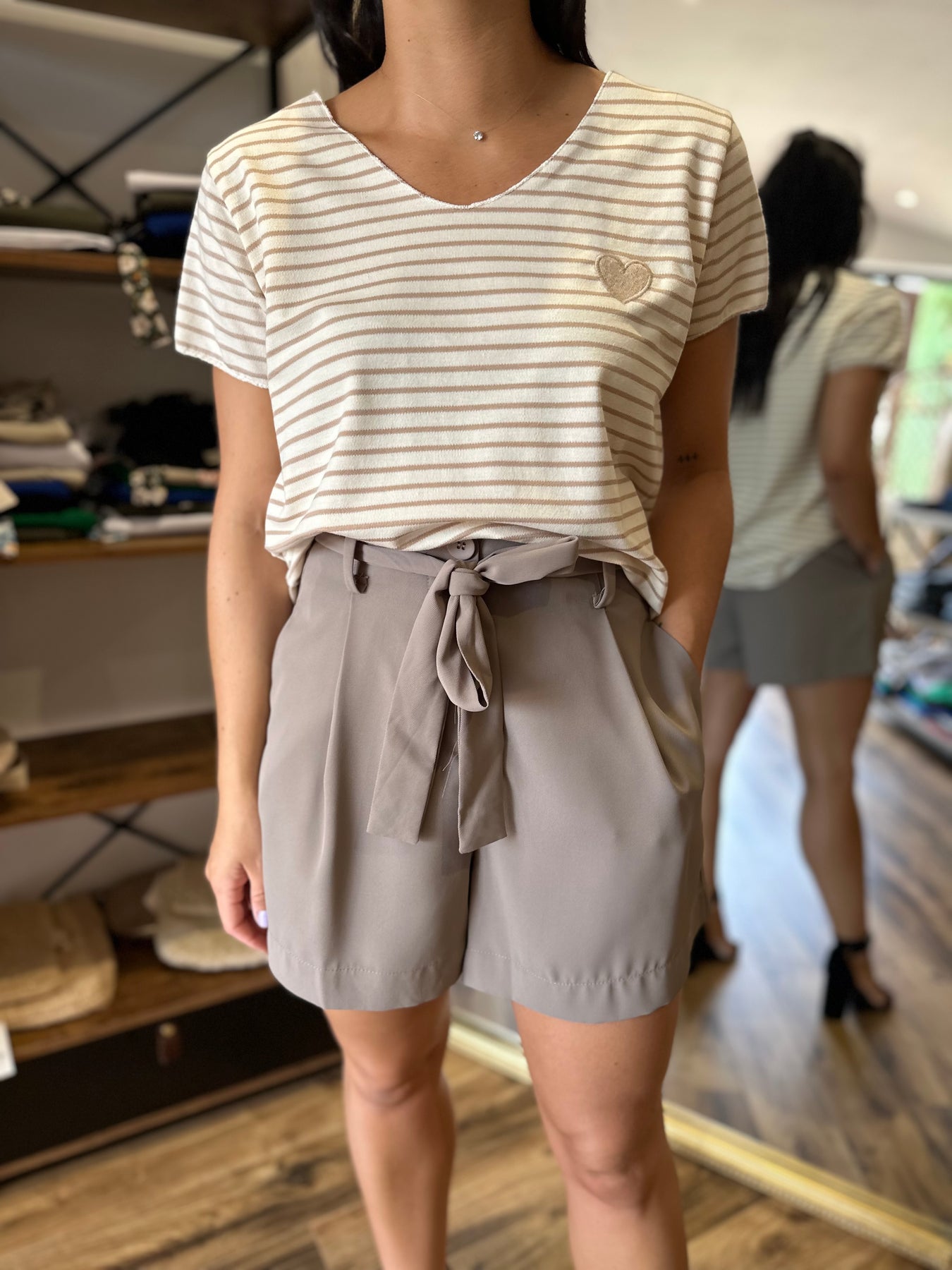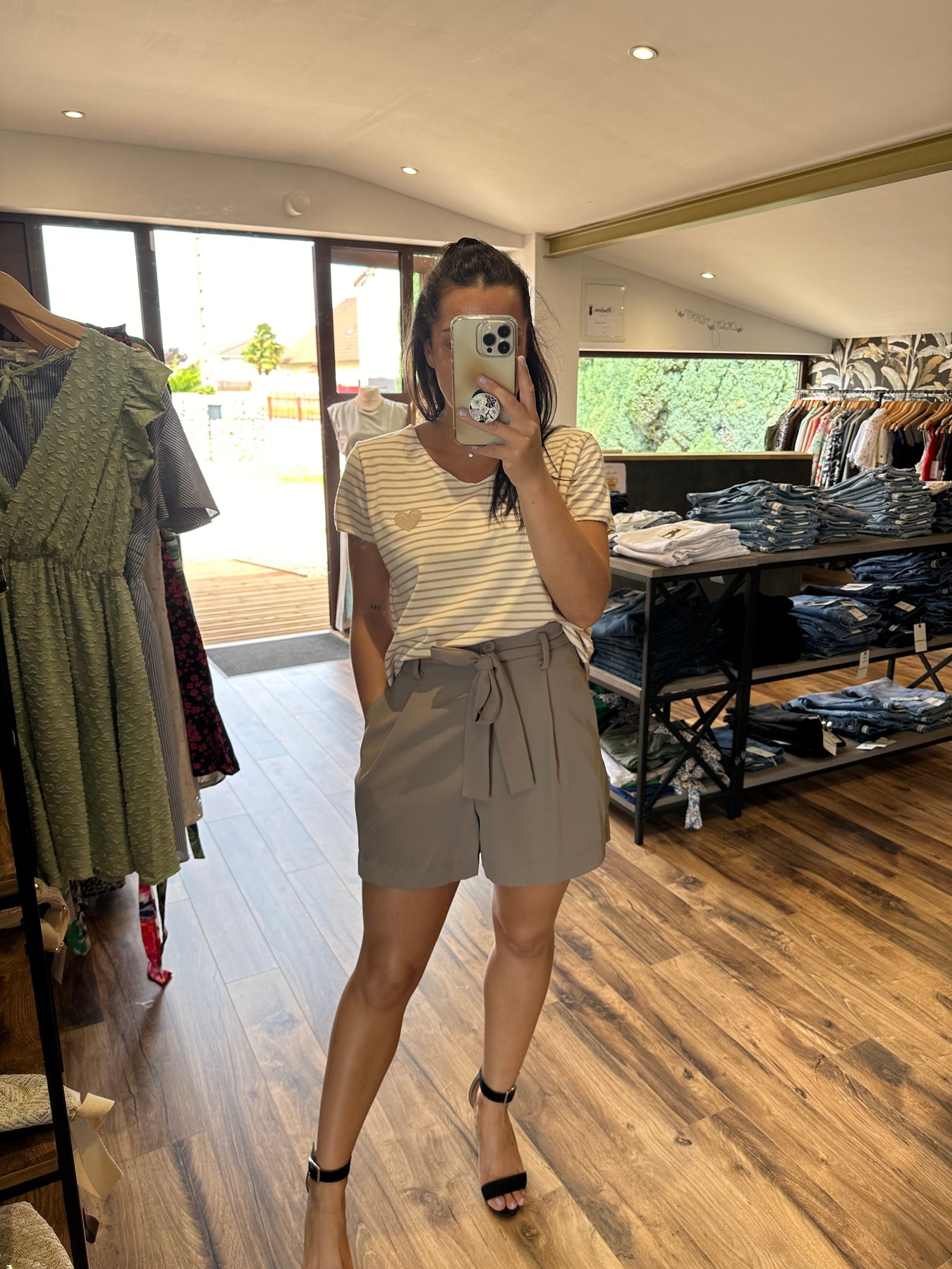 Alicia mesure 1m57 et met du 36 elle porte le short avec le teeshirt Melly