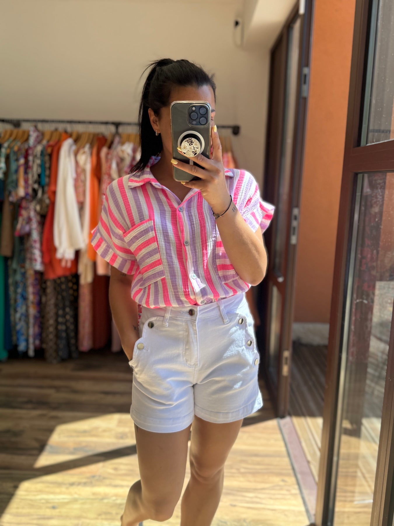 Un short blanc comme on les aime ! Coupe flatteuse, tissu confortable, petits détails stylés : le short Valentin coche toutes les cases pour un look d’été réussi. Il taille grand : nous conseillons de choisir une taille en dessous de votre taille habituelle. Idéal à associer avec une chemise fluide ou un tee-shirt coloré pour une silhouette estivale au top.