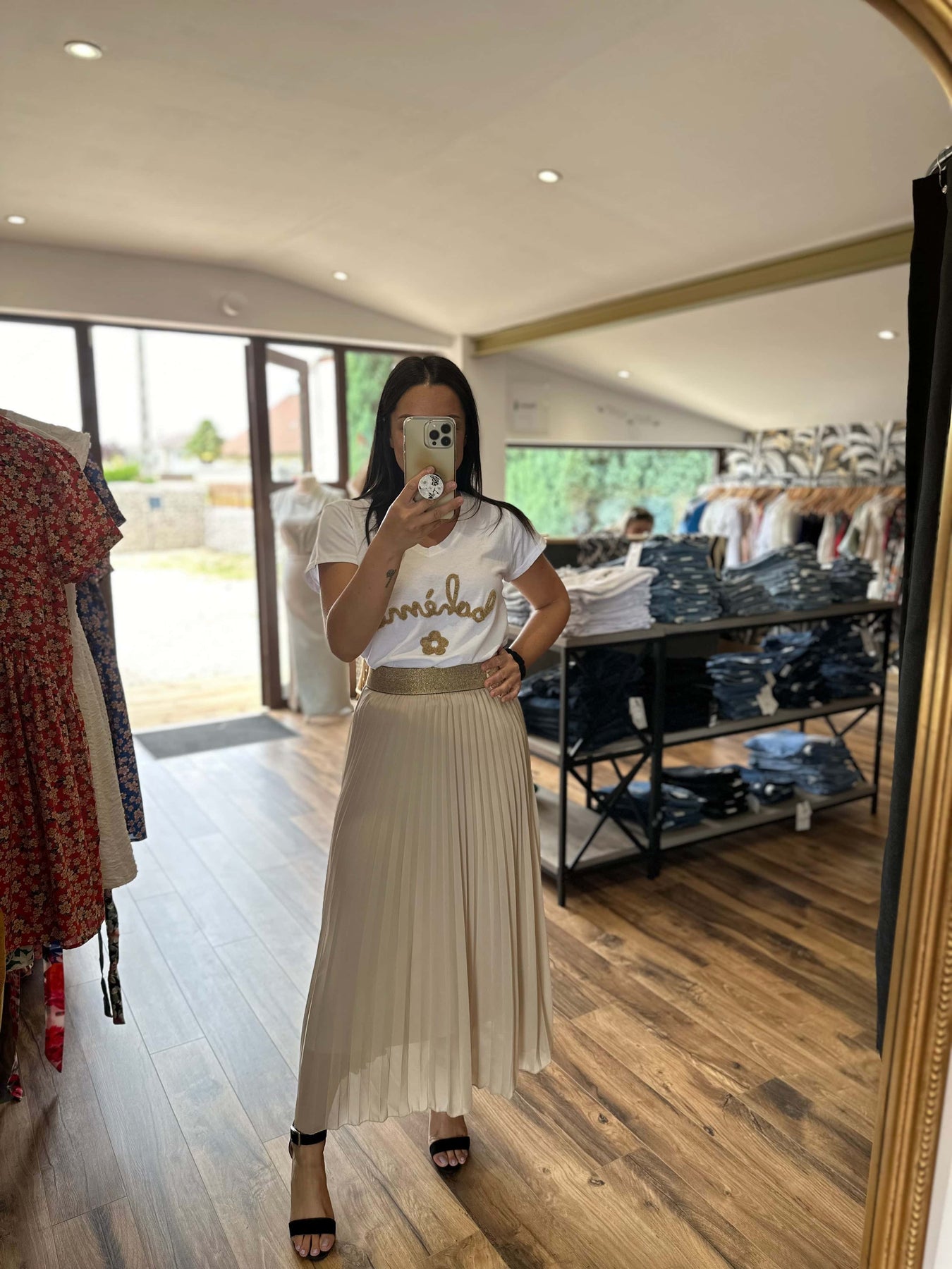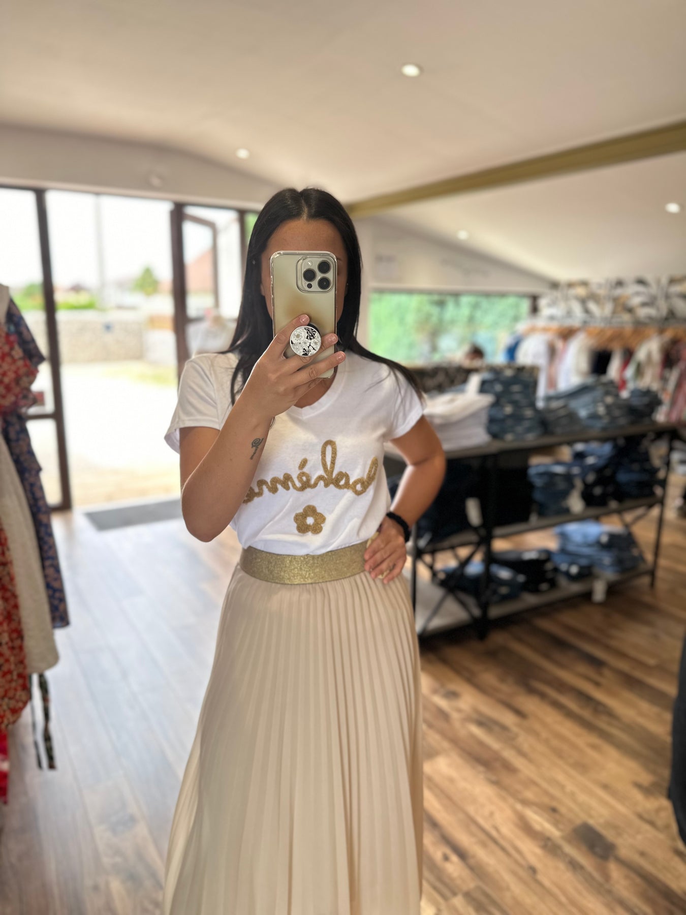 Alicia mesure 1m57 et met du 36 elle porte la jupe Gambi